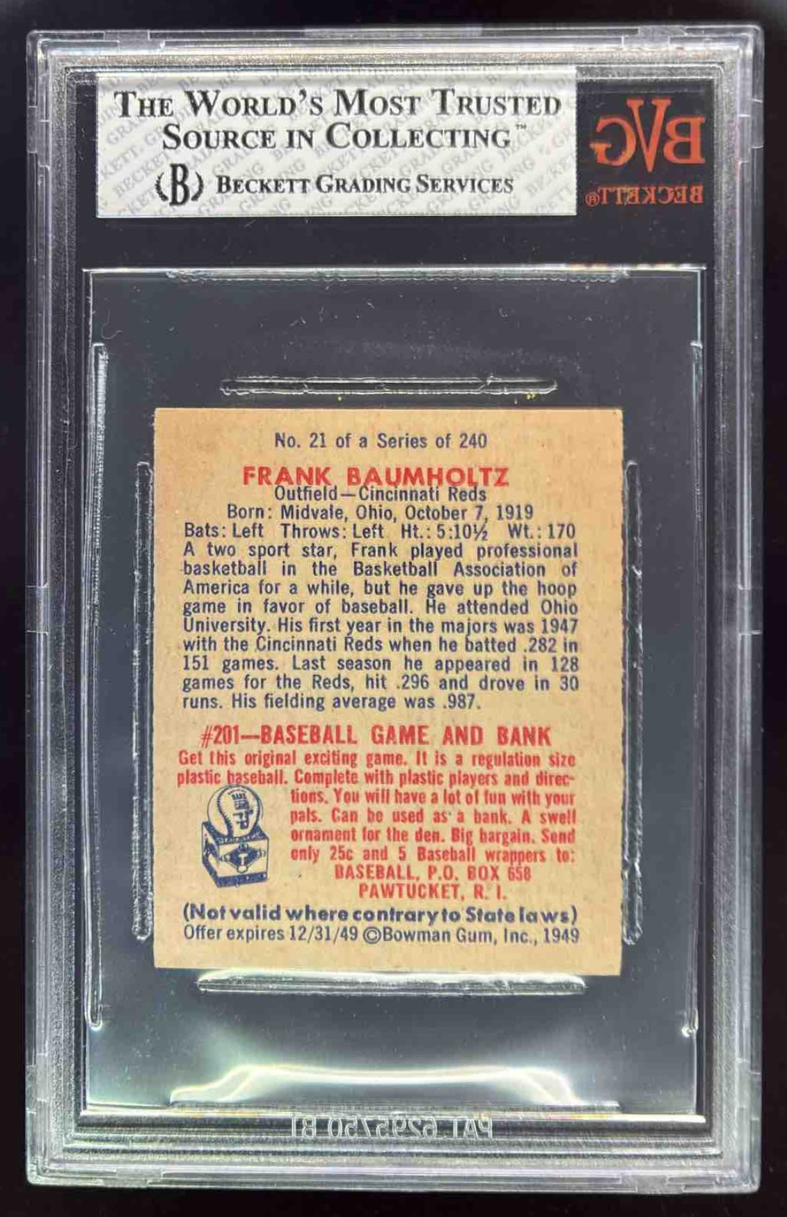 1949 Bowman #21 Frank Baumholtz RC BGS 8