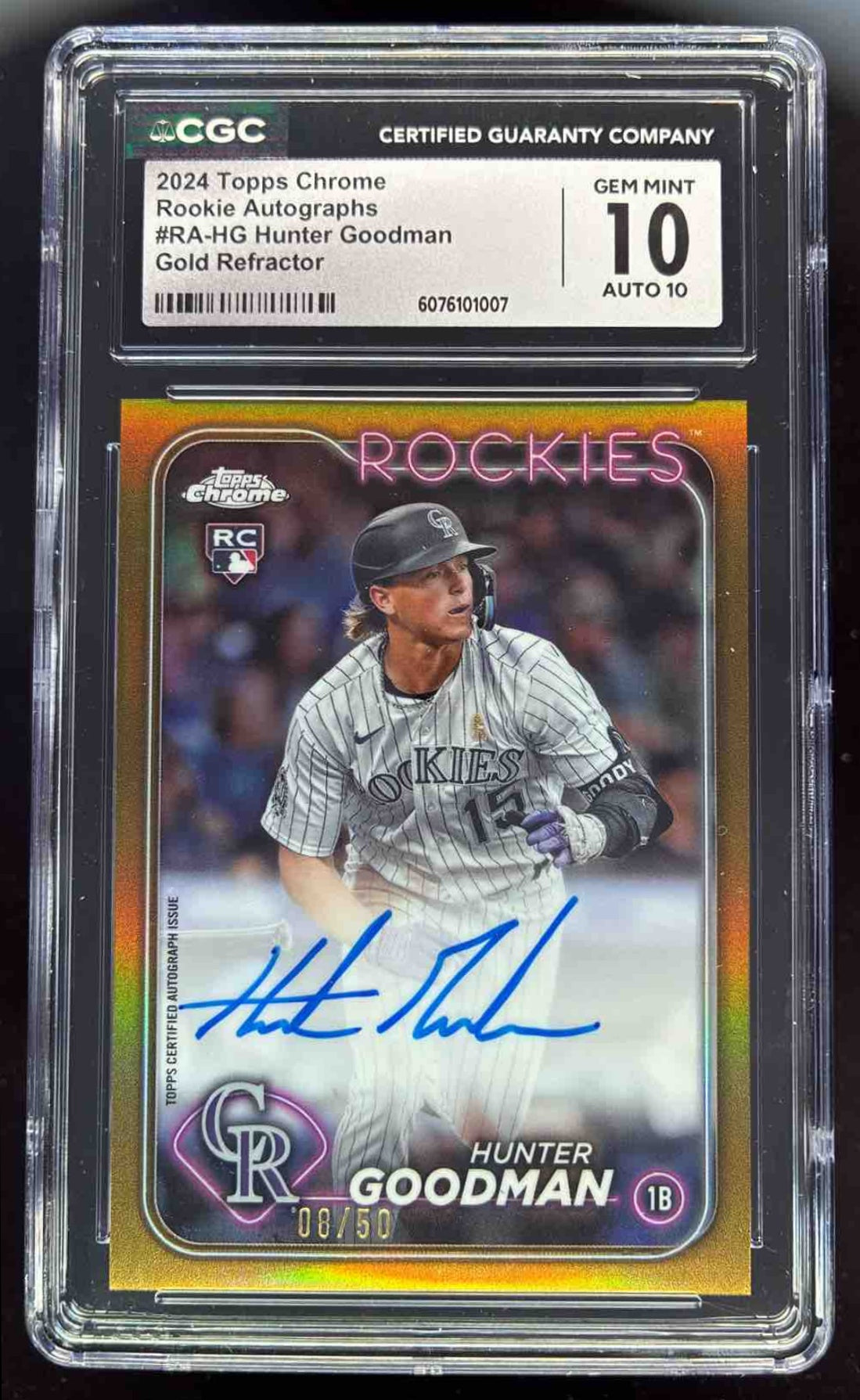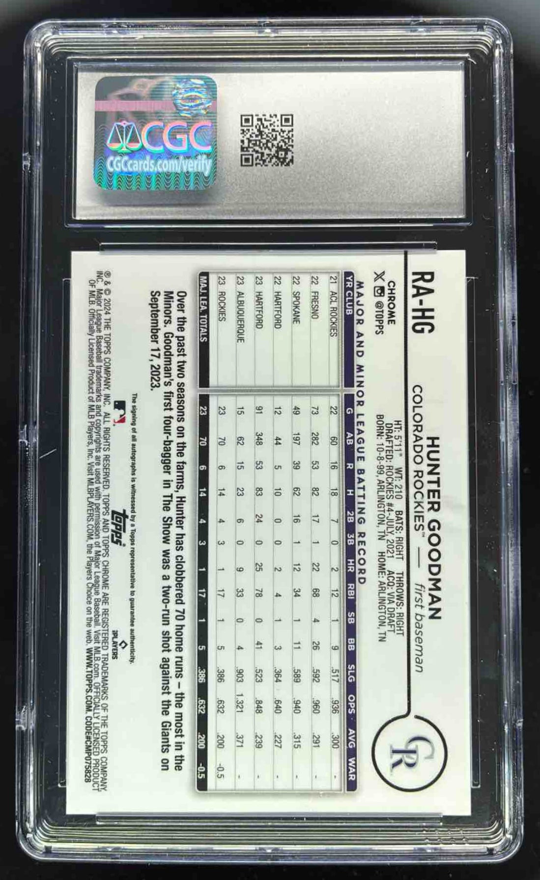 2024 Topps Chrome Rookie Gold Refractor #RA-HG Hunter Goodman RC Auto /50 CGC 10