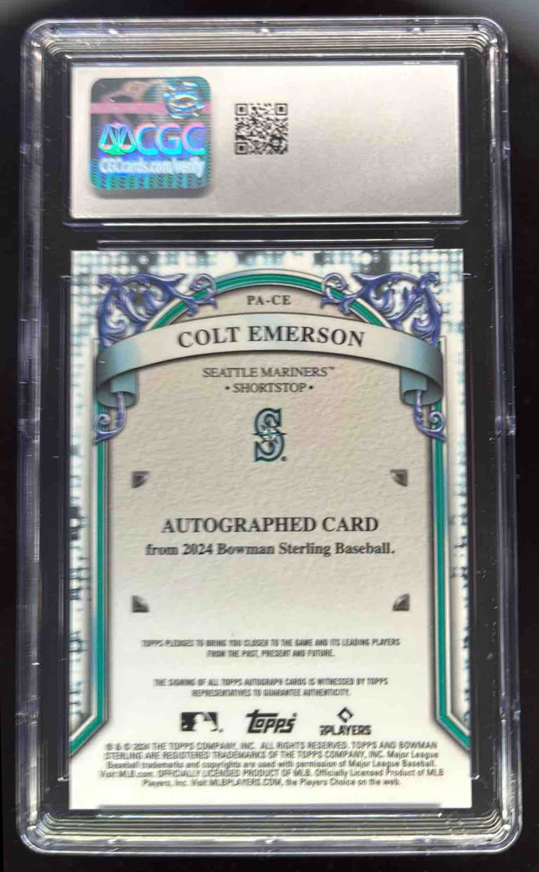 2024 Bowman Sterling Prospect Gold Refractor #PA-CE Colt Emerson Auto /50 CGC 10