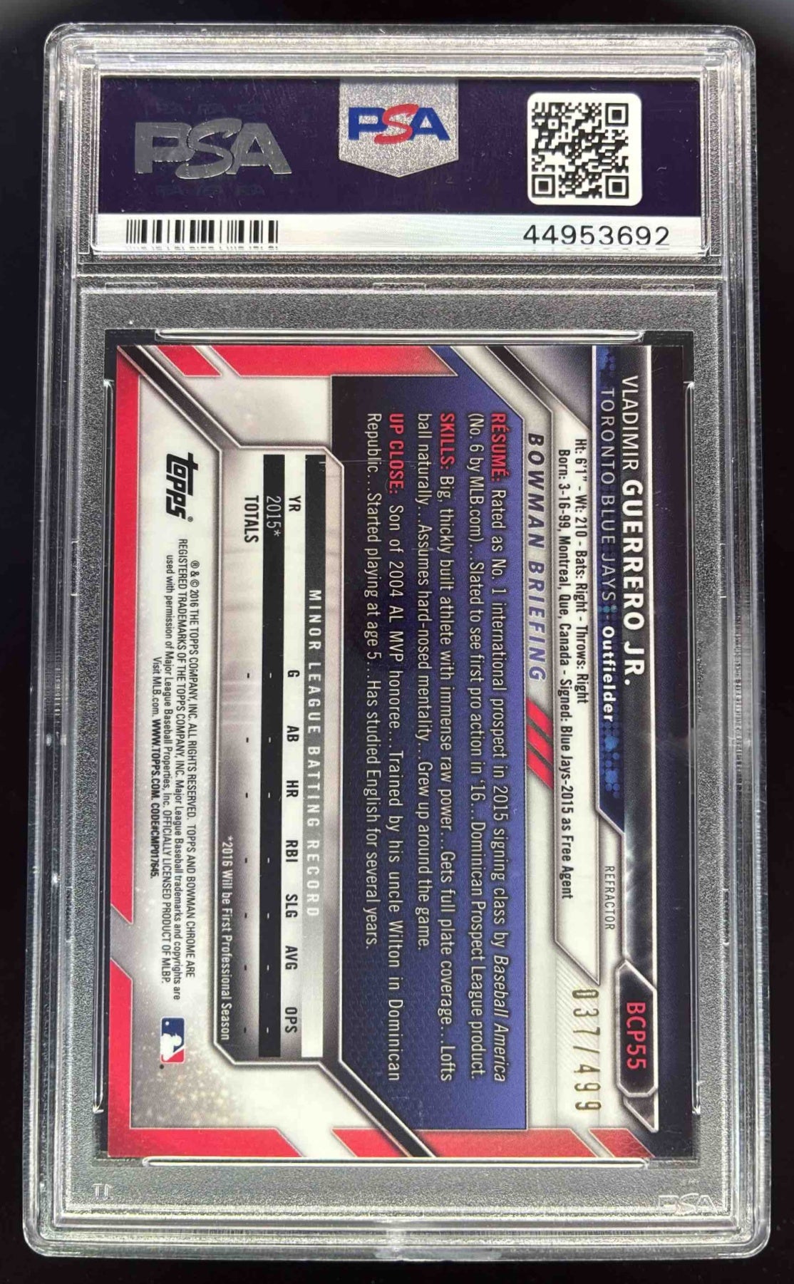 2016 Bowman Chrome Prospects Refractor #BCP55 Vladimir Guerrero Jr. /499 PSA 9
