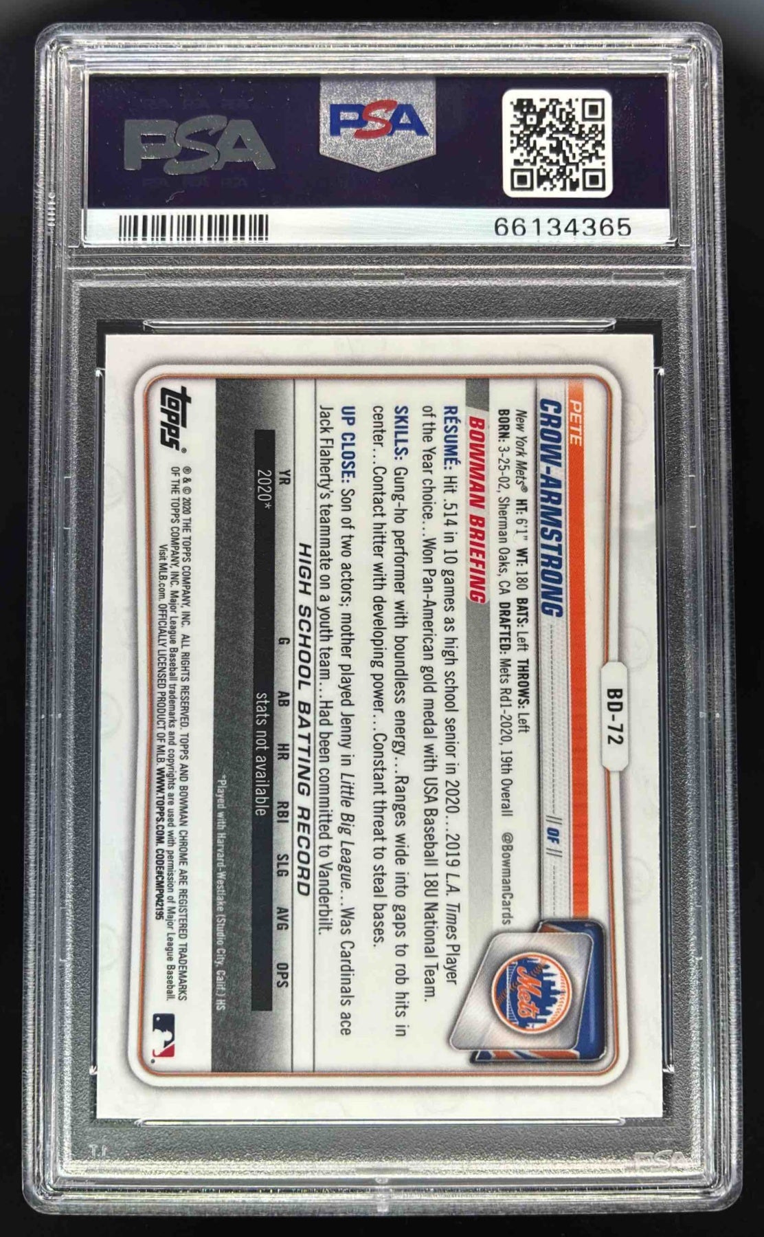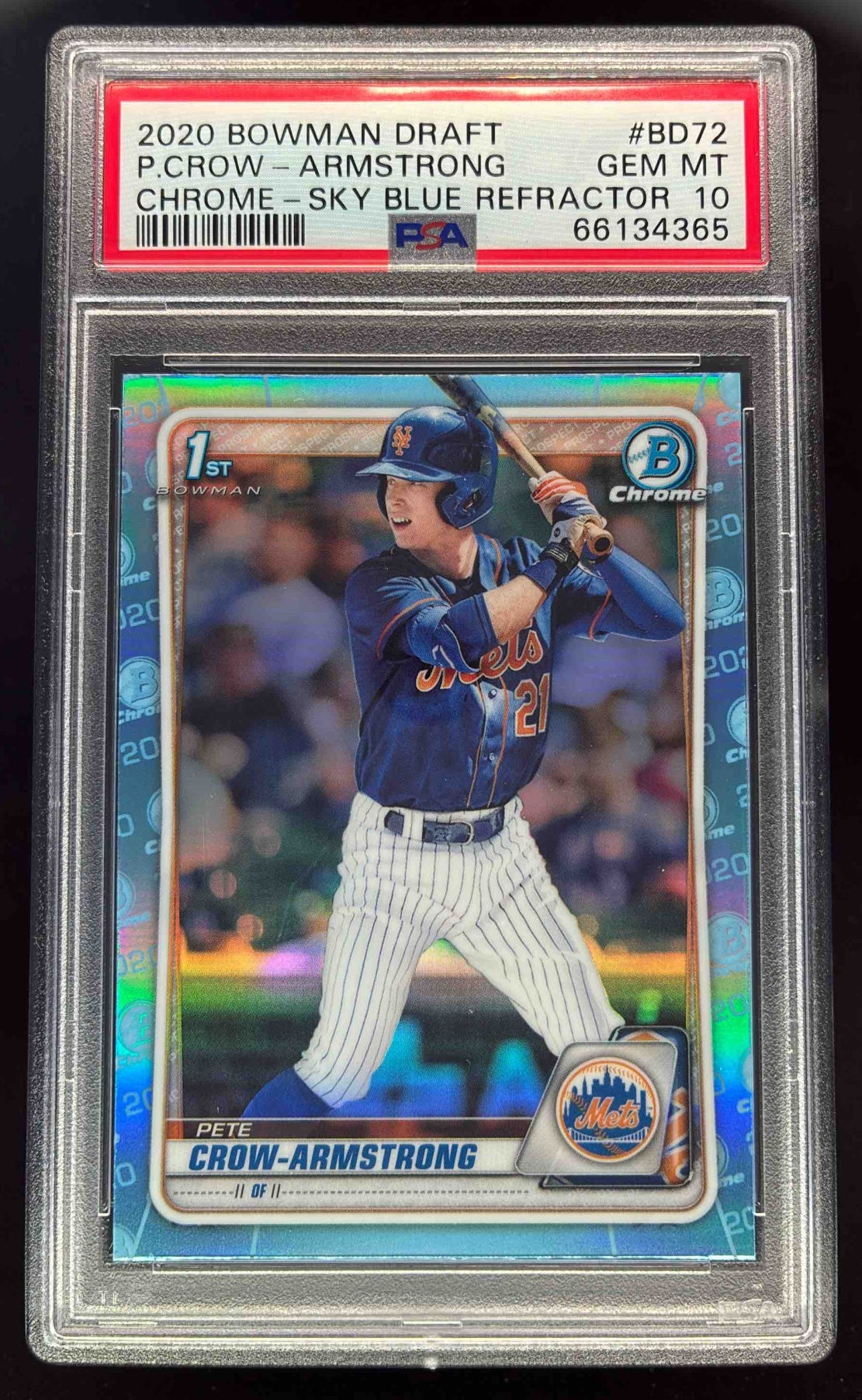 2020 Bowman Draft Chrome Sky Blue Refractor #BD-72 Pete Crow-Armstrong RC PSA 10