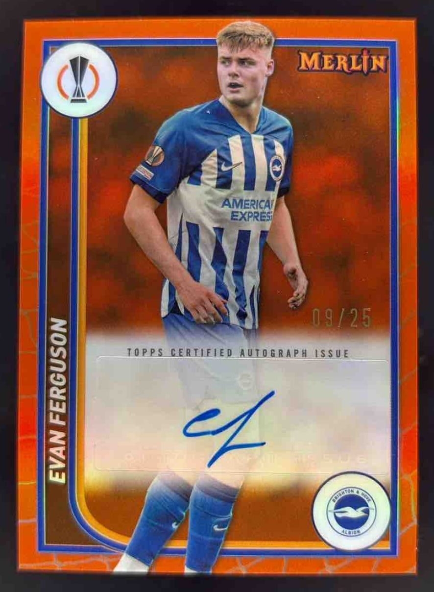 2023-24 Topps Chrome Merlin UEFA Orange Refractor #AU-EF Evan Ferguson Auto /25