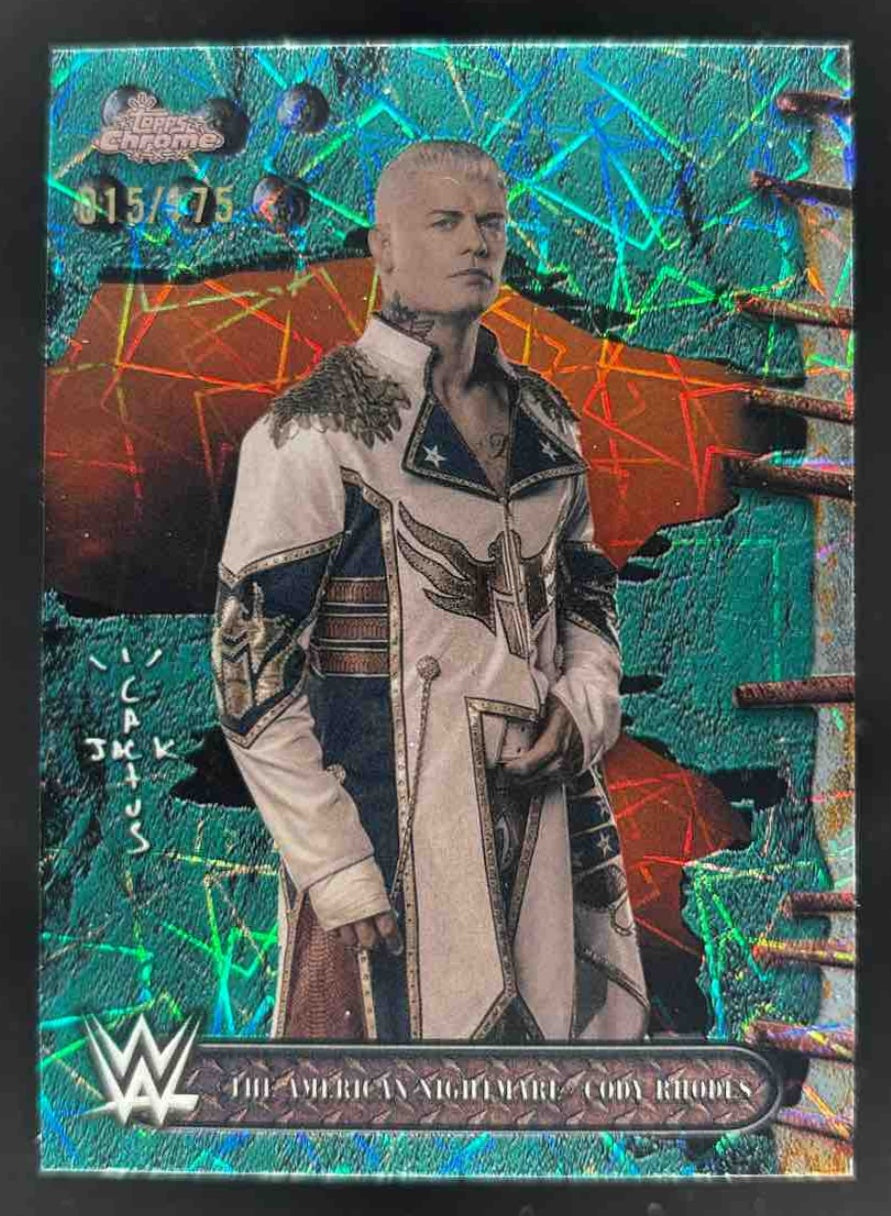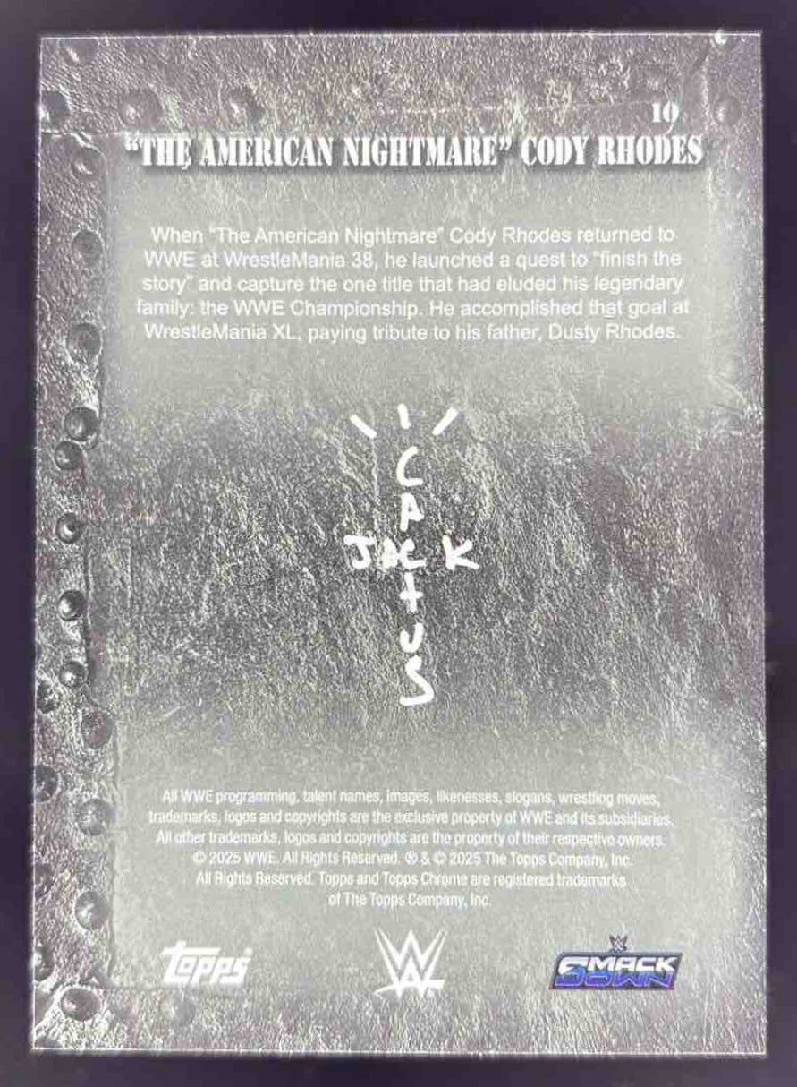 2025 Topps Chrome WWE x Cactus Jack Teal Laser Refractor #10 Cody Rhodes /175