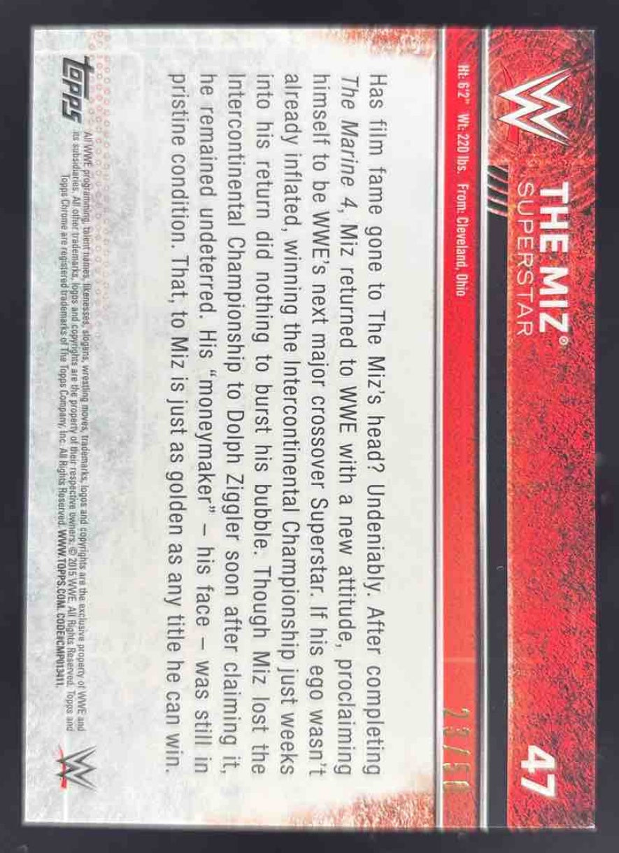 2015 Topps Chrome WWE Gold Refractor #47 The Miz /50