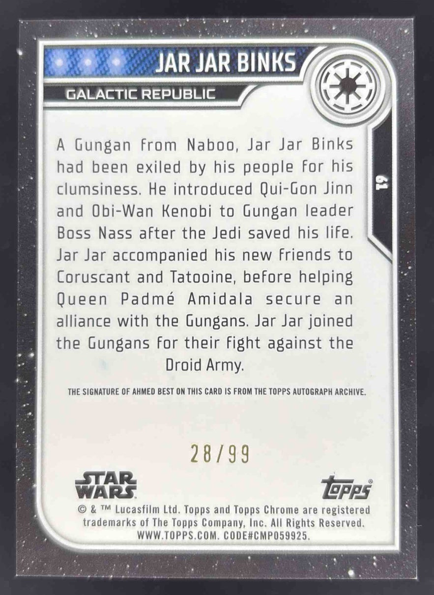2023 Topps Chrome Star Wars Green #61 Jar Jar Binks Auto /99