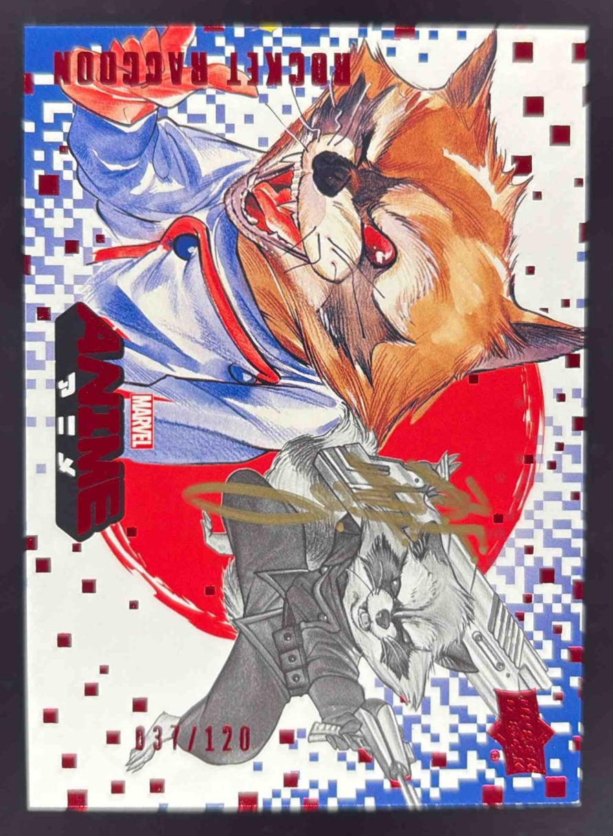 2020 Upper Deck Marvel Anime Red Foil Artist Auto #51 Rocket Raccoon Auto /120