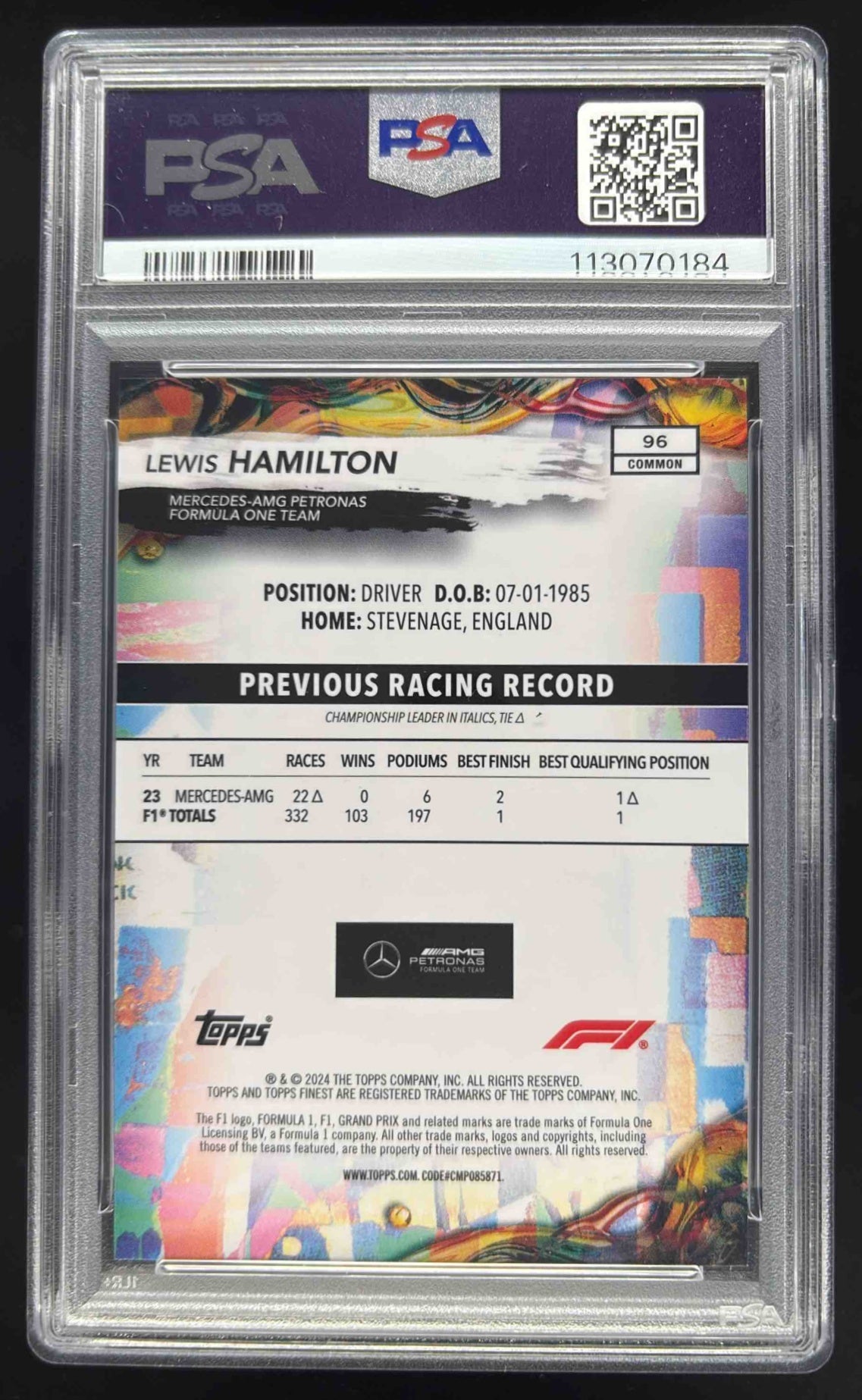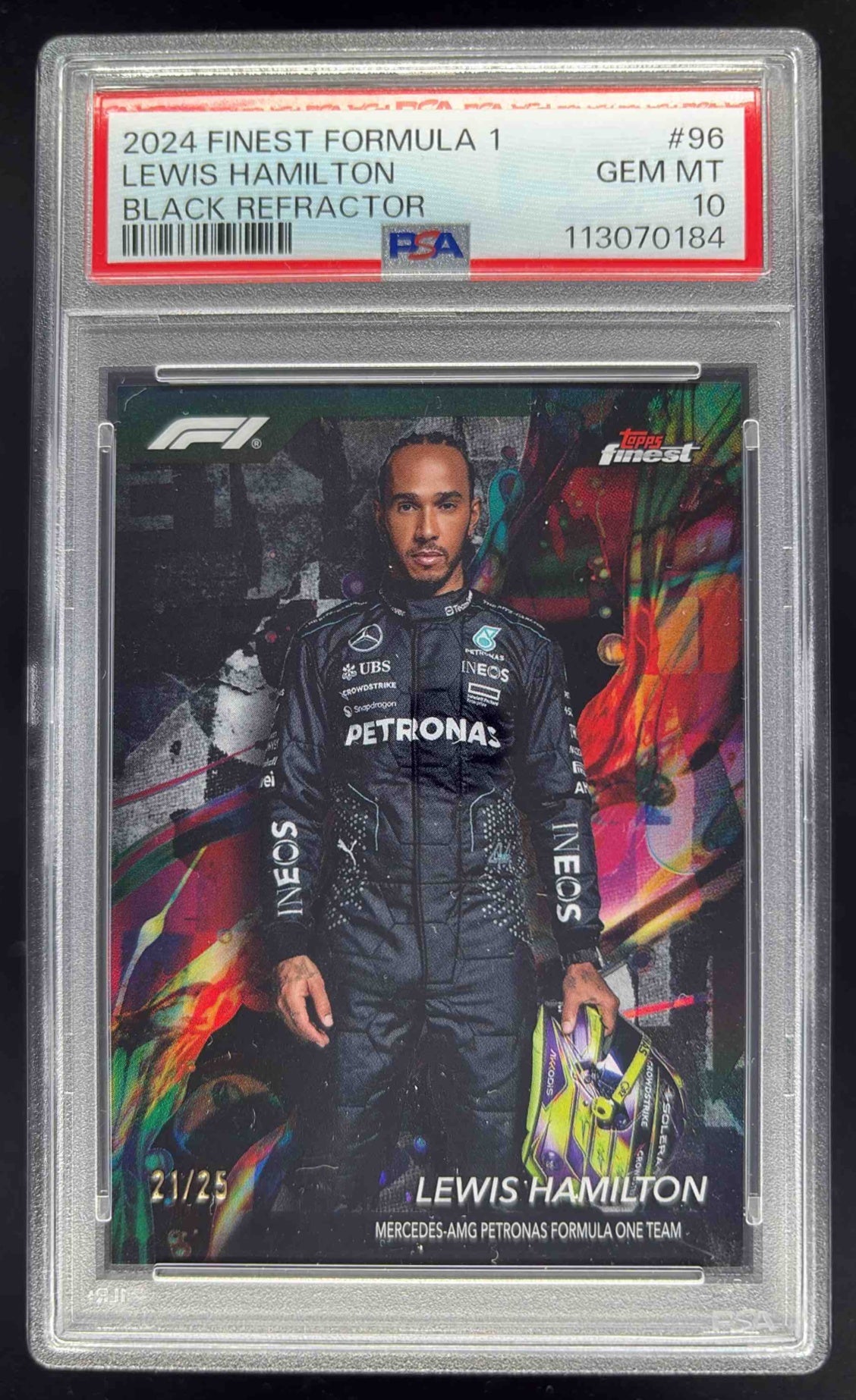 2024 Topps Finest Formula 1 Black Refractors Lewis Hamilton Common /25 PSA 10