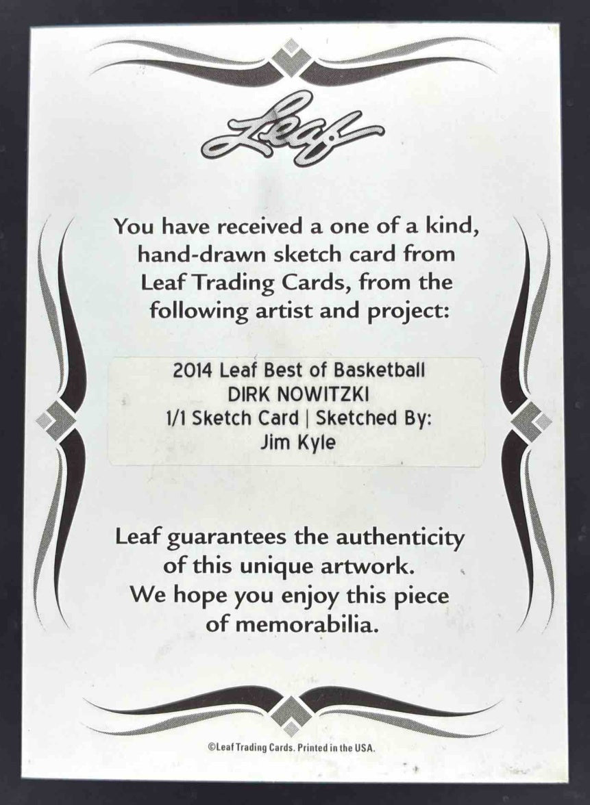 2014 Leaf Best of Basketball Sketch Card Dirk Nowitzki Auto Jim Kyle 1/1