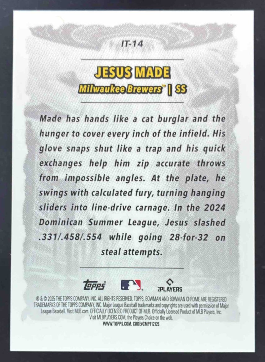 2025 Bowman Chrome It Came to the League Orange Refractor #IT-14 Jesus Made /25