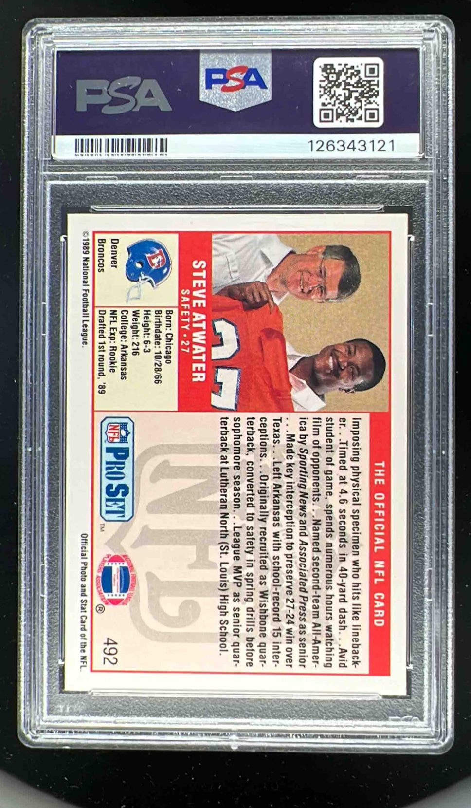 1989 Pro Set #492 Steve Atwater Rookie Autograph RC Auto Certified PSA 9