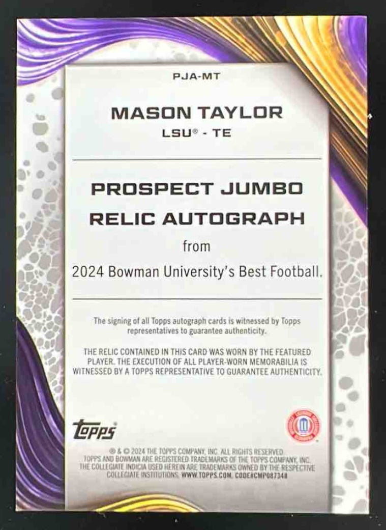 2024 Bowman Best University Prospect Jumbo Relic #PJA-MT Mason Taylor Auto