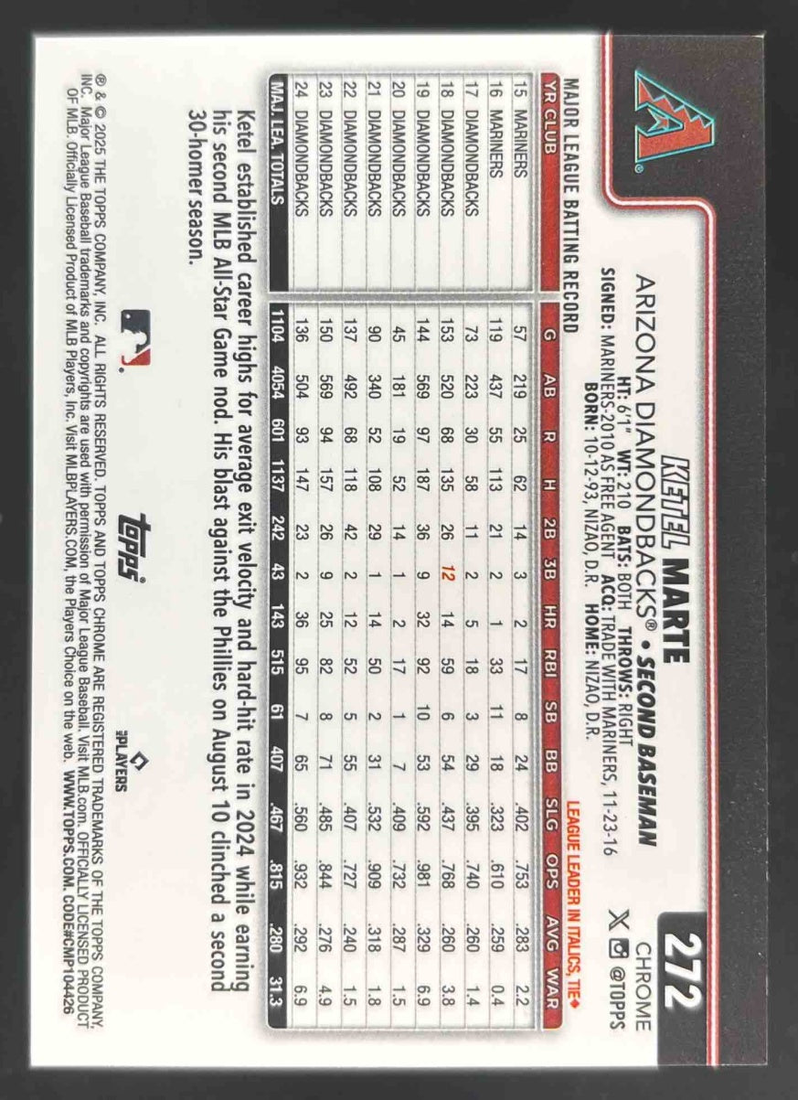 2025 Topps Chrome Black Geometric Refractor #272 Ketel Marte /10