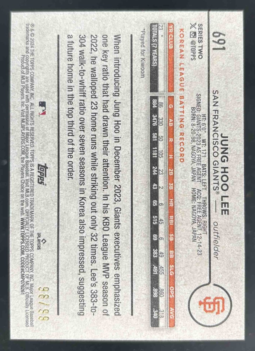 2024 Topps Vintage Stock #691 Jung Hoo Lee RC /99