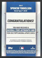 2022 Topps Update Baseball Stars Black #BSA-ST Spencer Torkelson RC Auto /199