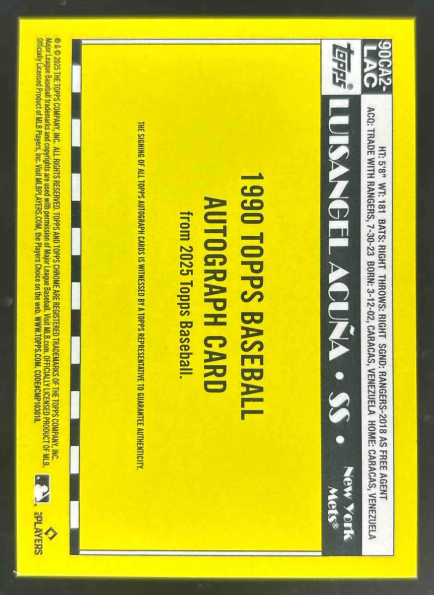 2025 Topps 1990 Chrome Silver Pack Gold Refractor Luisangel Acuna RC Auto /50