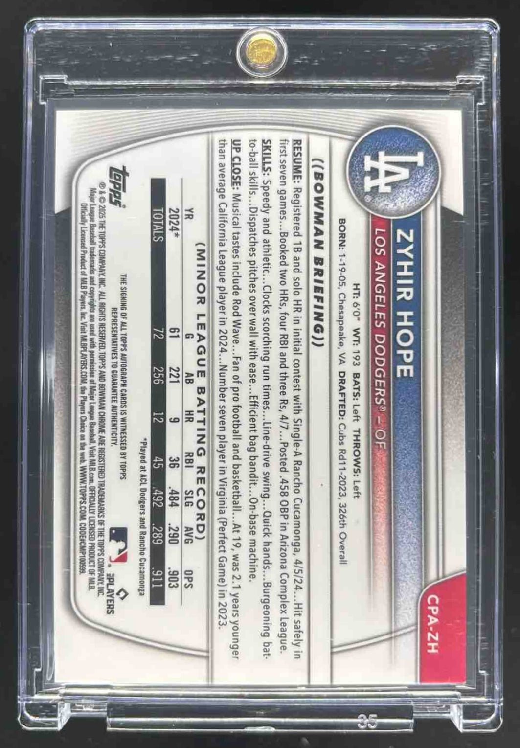 2025 Bowman Chrome Prospect Gold Shimmer Refractor #CPA-ZH Zyhir Hope Auto /50