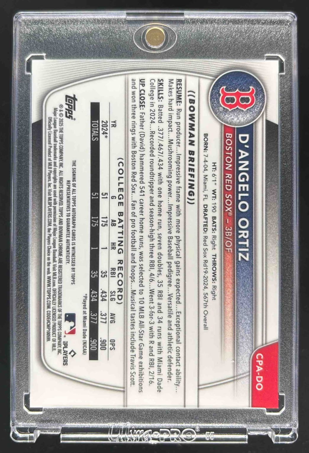 2025 Bowman Chrome Reptilian Orange Refractor #CPA-DO D Angelo Ortiz RC Auto /25