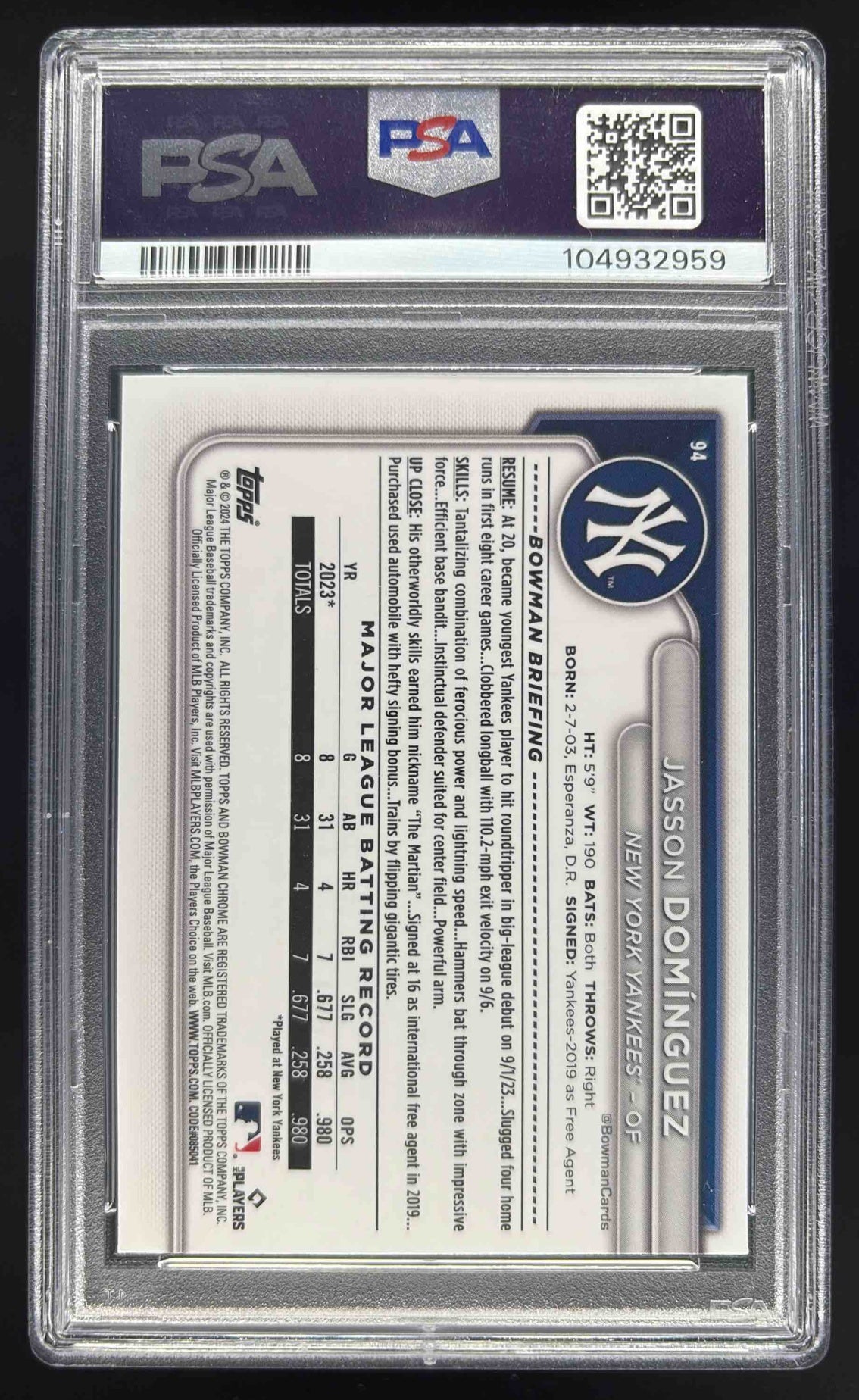 2024 Bowman Chrome Sapphire #94 Jasson Dominguez RC PSA 10