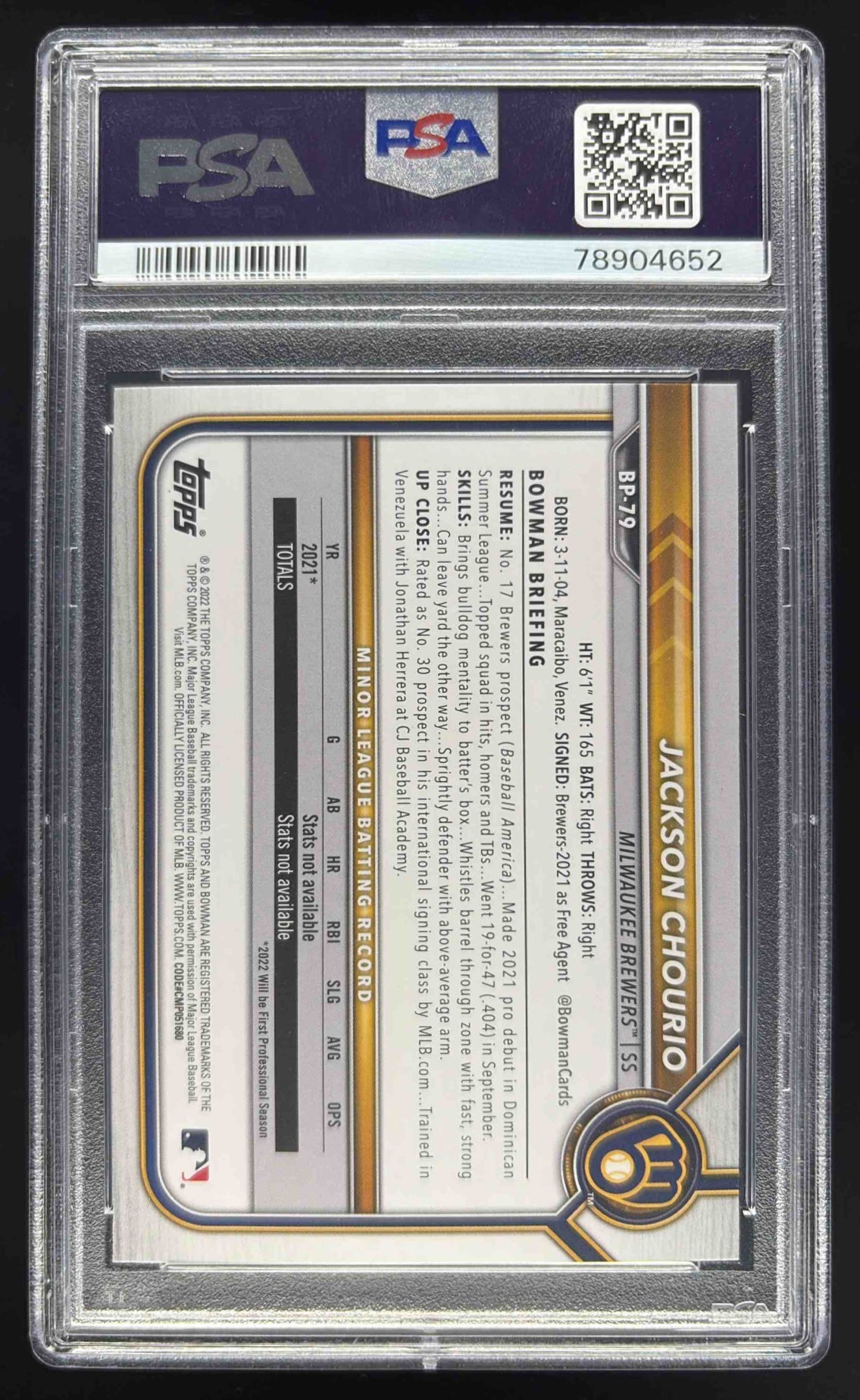 2022 Bowman Prospects #BP-79 Jackson Chourio RC PSA 10