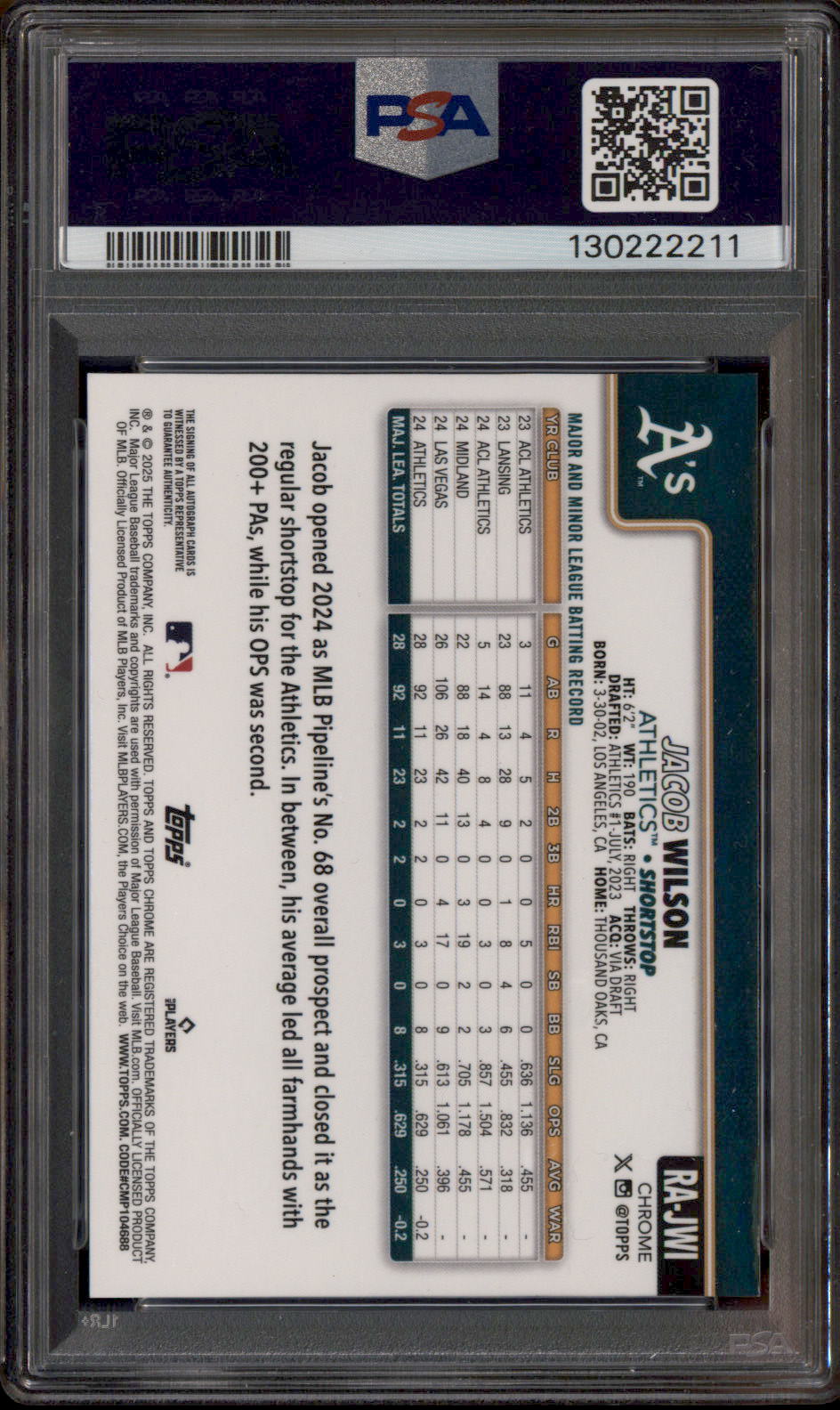 2025 Topps Chrome Sapphire Rookie Auto Orange Jacob Wilson RC /25 PSA 9