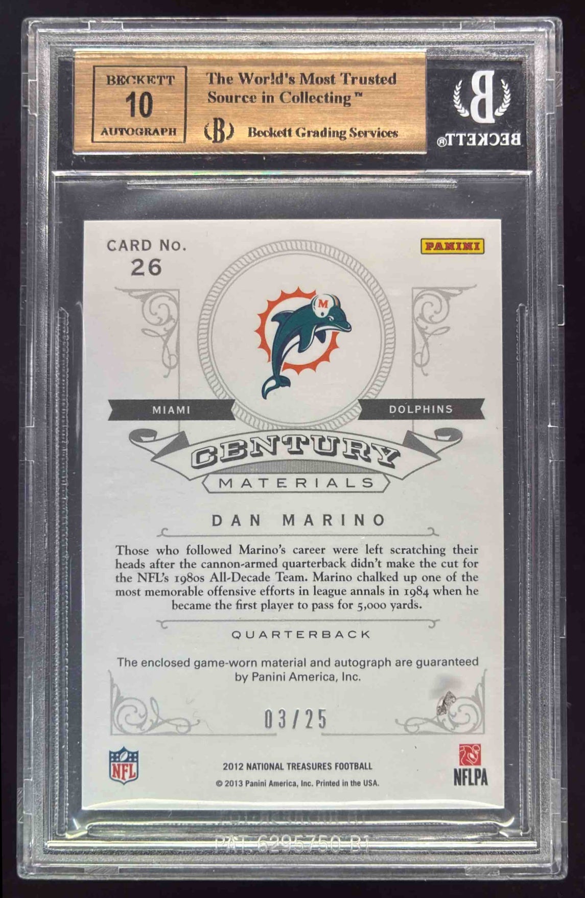 2012 National Treasures Legend Century Materials #26 Dan Marino Auto /25 BGS 9.5