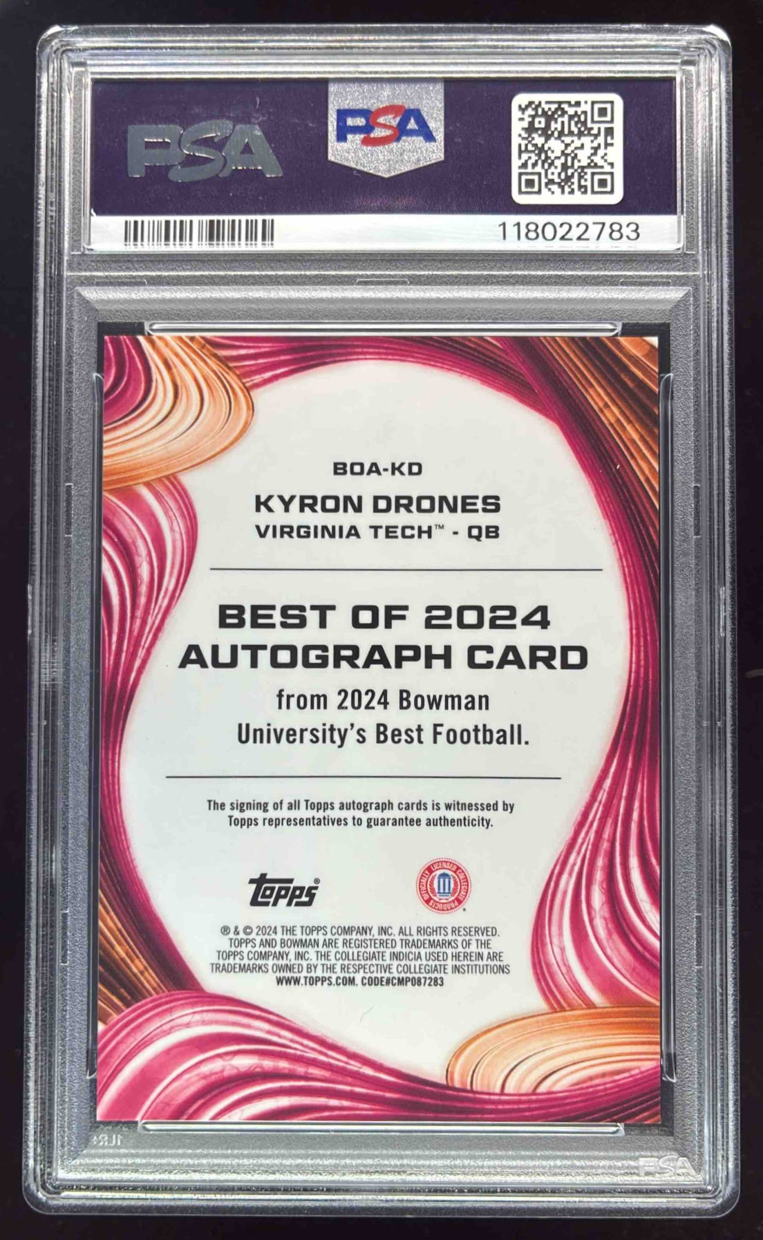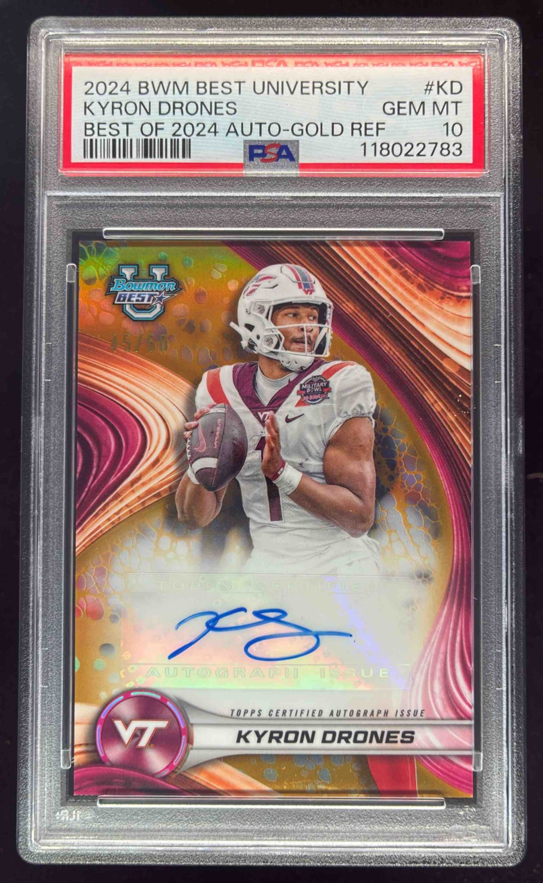 2024 Bowman Best University of 2024 Gold Refractor Kyron Drones Auto /50 PSA 10