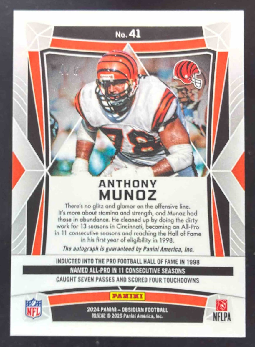 2024 Panini Obsidian Signatures International Jade #41 Anthony Munoz Auto /6