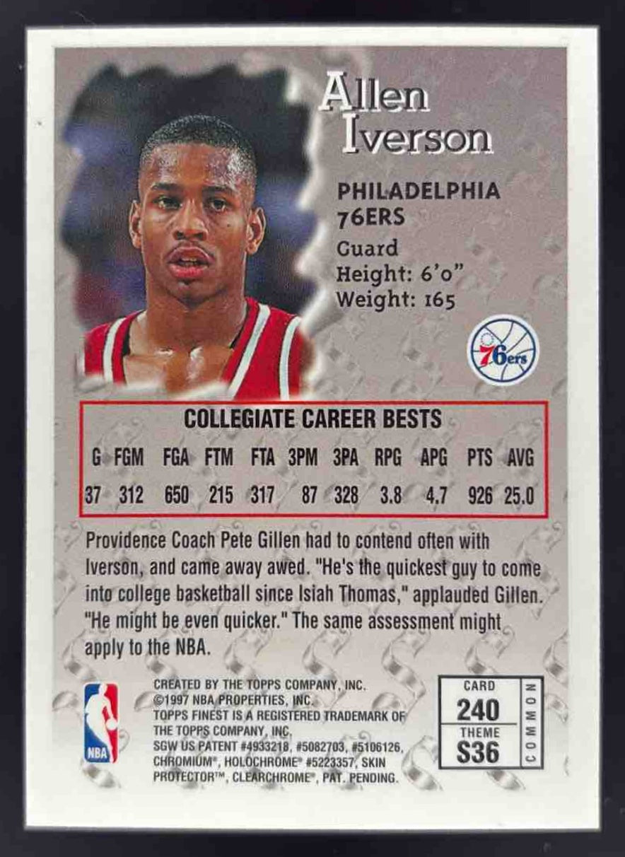 1996-97 Topps Finest Bronze #240 Allen Iverson