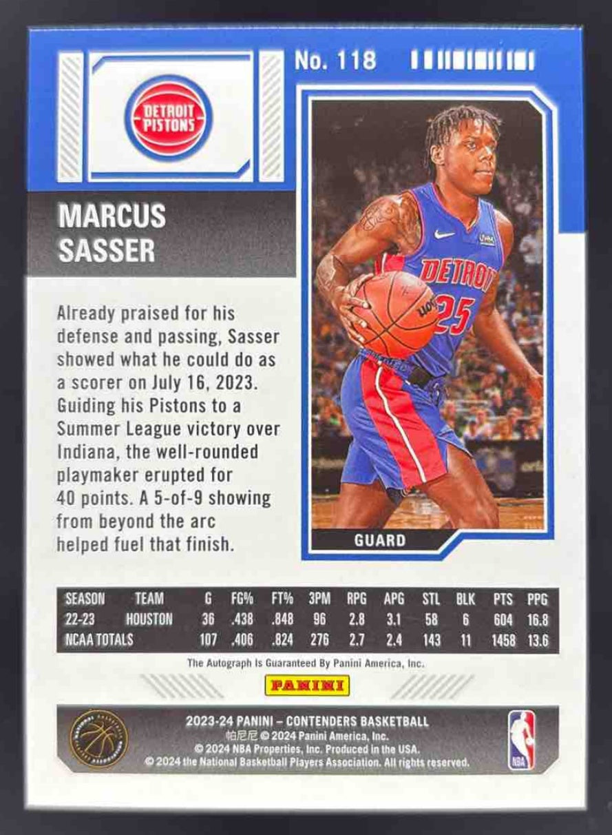 2023-24 Panini Contenders The Finals Ticket #118 Marcus Sasser RC Auto /49