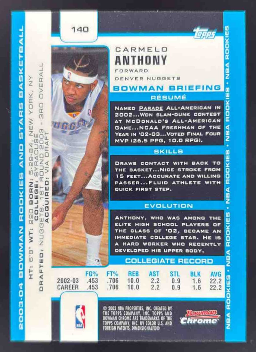 2003-04 Bowman Rookies & Stars Chrome #140 Carmelo Anthony RC