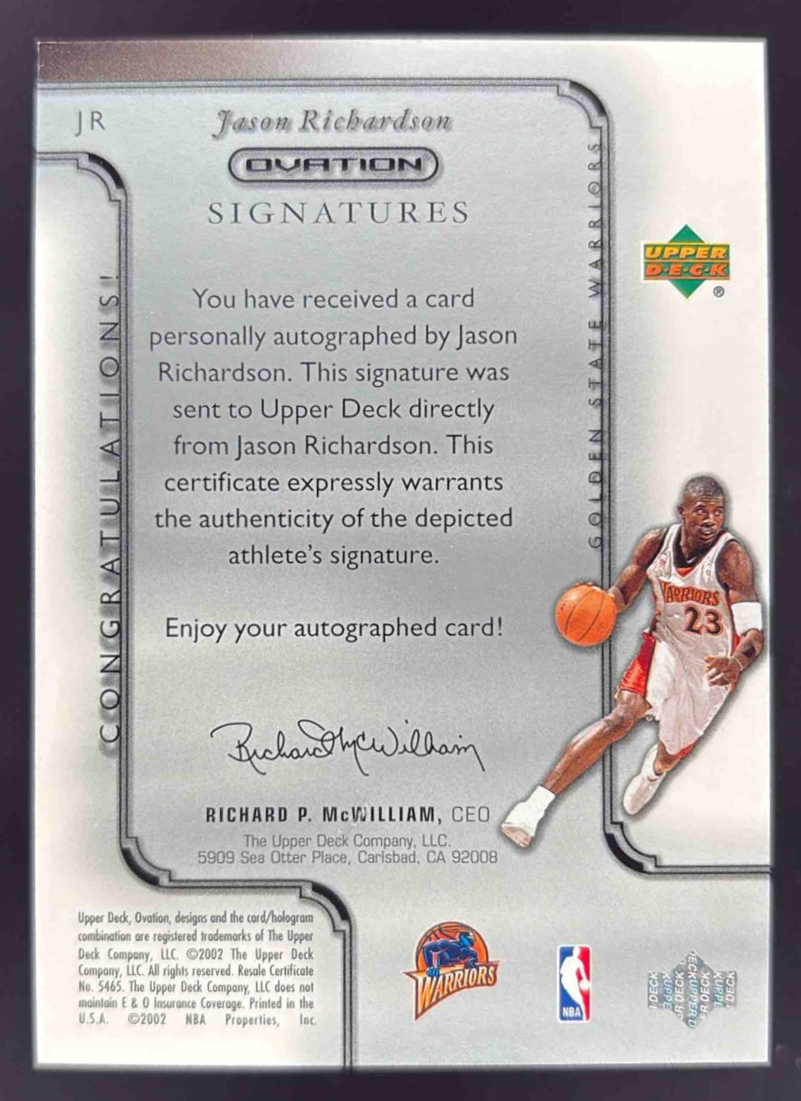 2002-03 Upper Deck Ovation Signatures #JR Jason Richardson Auto