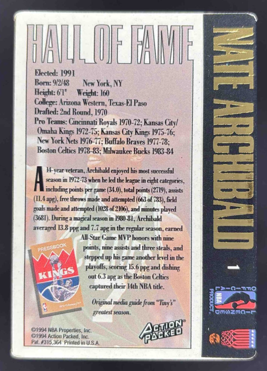1995-96 Action Packed Hall of Fame #1 Nate Archibald
