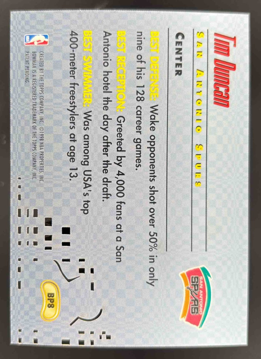 1997-98 Bowman 's Best Picks #BP8 Tim Duncan RC