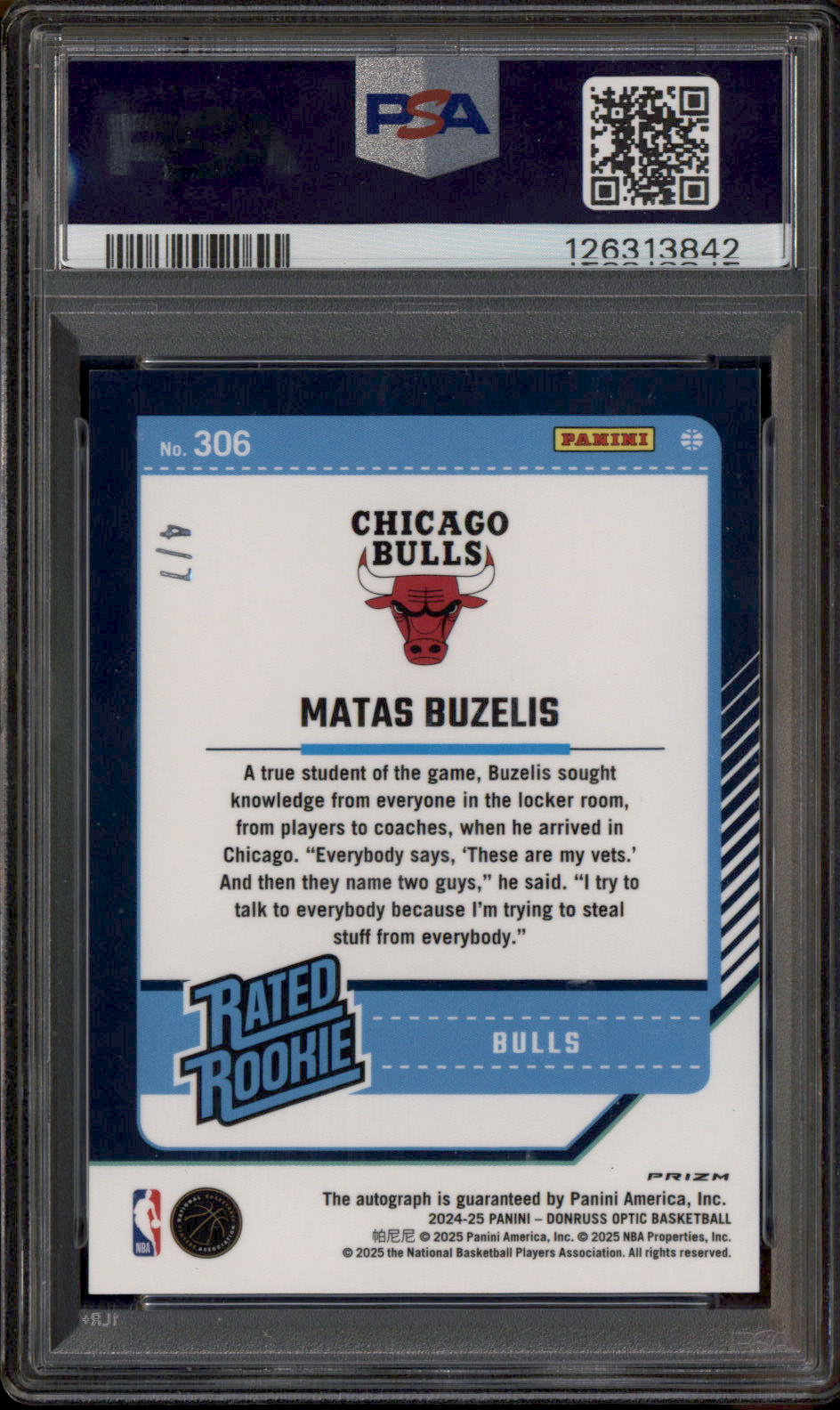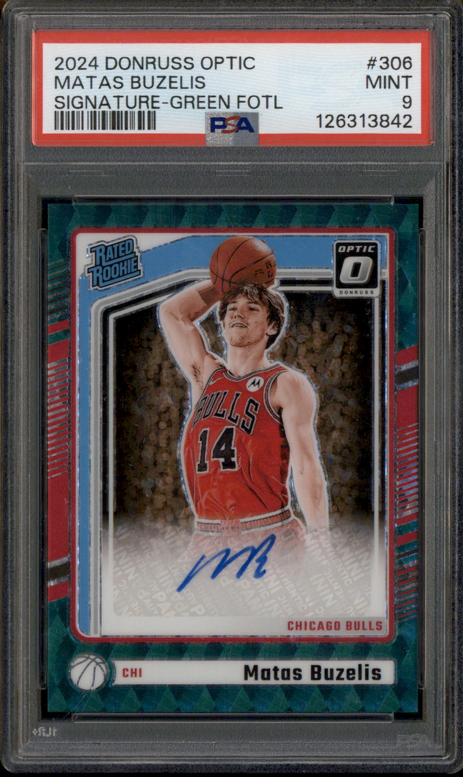 2024 Donruss Optic Rookie Signature Green FOTL Matas Buzelis RC Auto /7 PSA 9