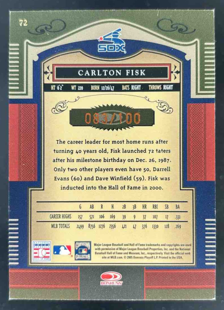 2005 Donruss Timeless Treasures Signature Bronze #72 Carlton Fisk Auto /100