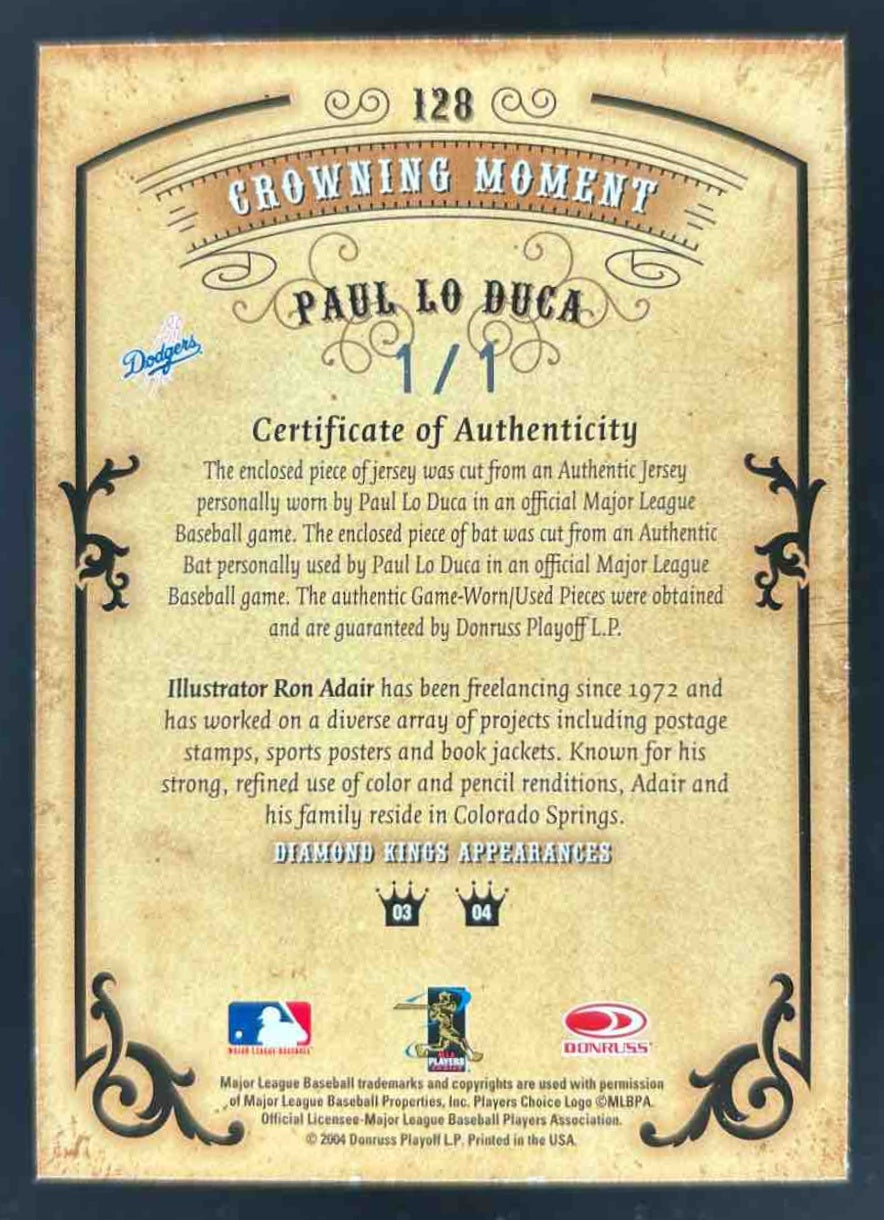 2004 Donruss Diamond Kings DK Materials Platinum #128 Paul Lo Duca Auto 1/1