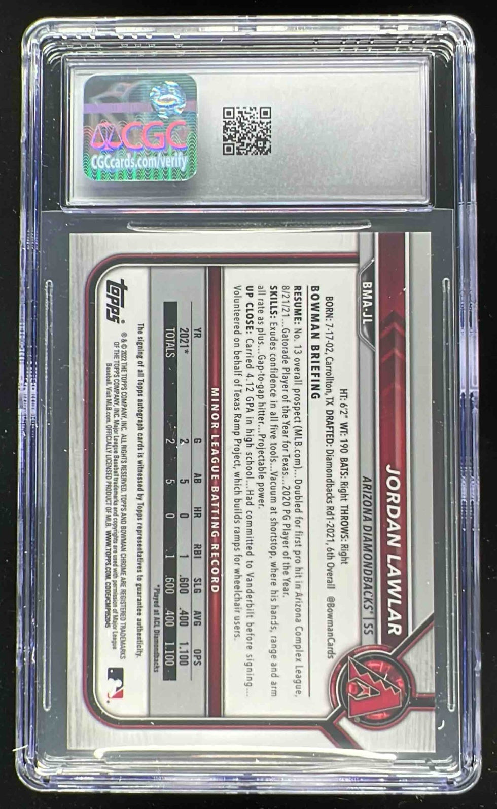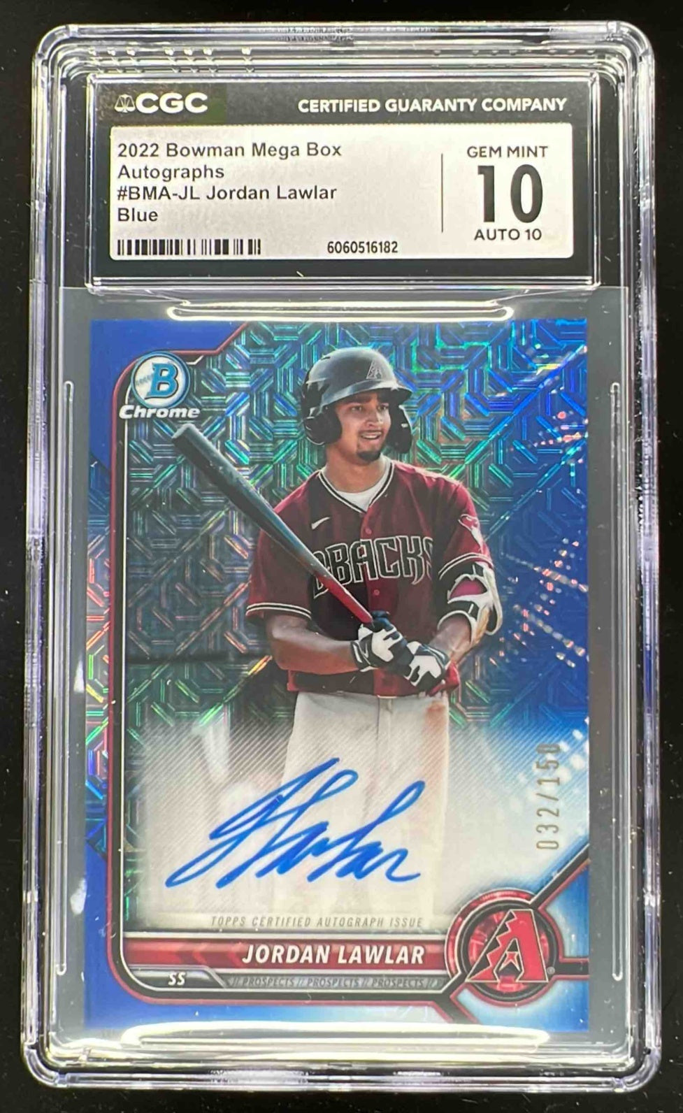 2022 Bowman Mega Box Blue Mojo Refractor #BMA-JL Jordan Lawlar Auto /150 CGC 10
