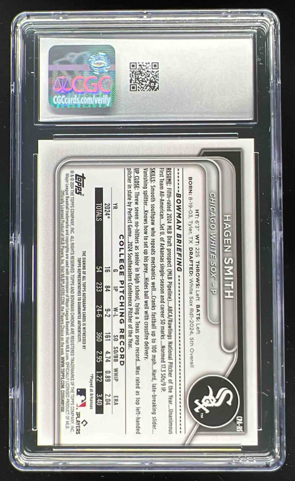 2024 Bowman Draft Chrome Autographs #CPA-HS Hagen Smith RC Auto CGC 10
