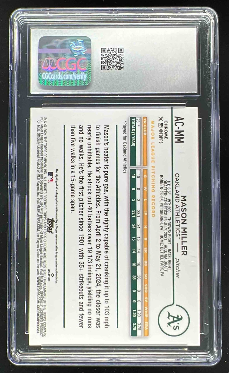 2024 Topps Chrome Update Purple Refractor #AC-MM Mason Miller Auto /250 CGC 10