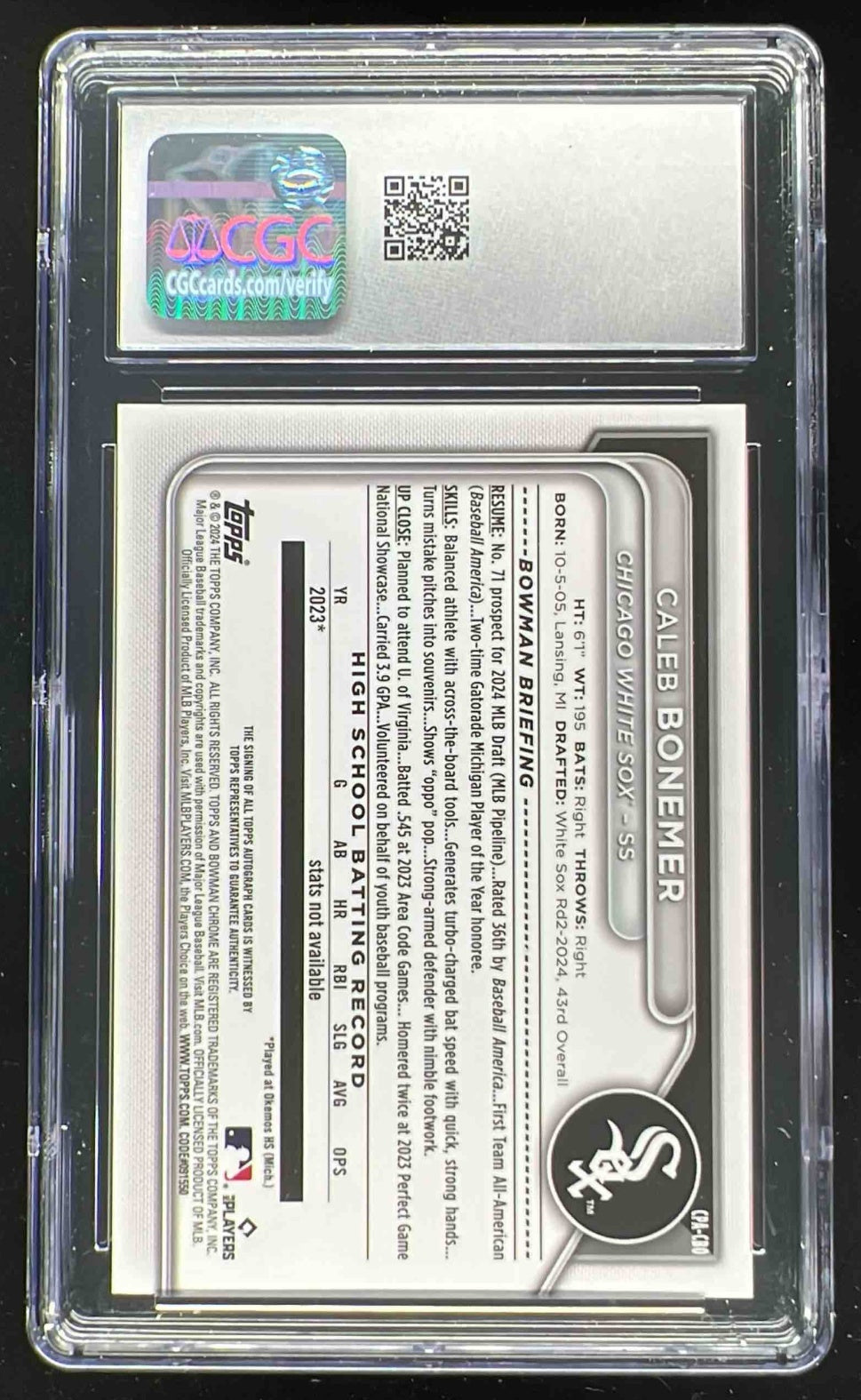 2024 Bowman Draft Chrome HTA Choice Refractor Caleb Bonemer RC Auto /150 CGC 10