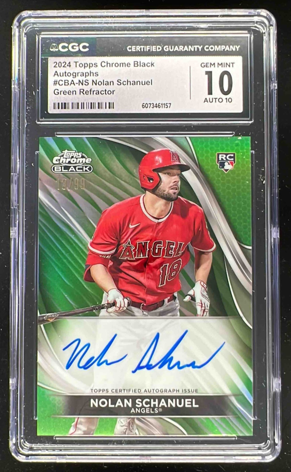 2024 Topps Chrome Black Green Refractors #NS Nolan Schanuel RC Auto /99 CGC 10