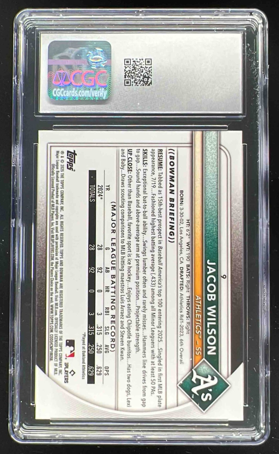 2025 Bowman Chrome Red RC Rookie Redemption #9 Jacob Wilson RC CGC 10