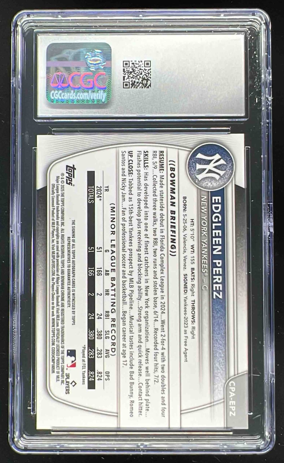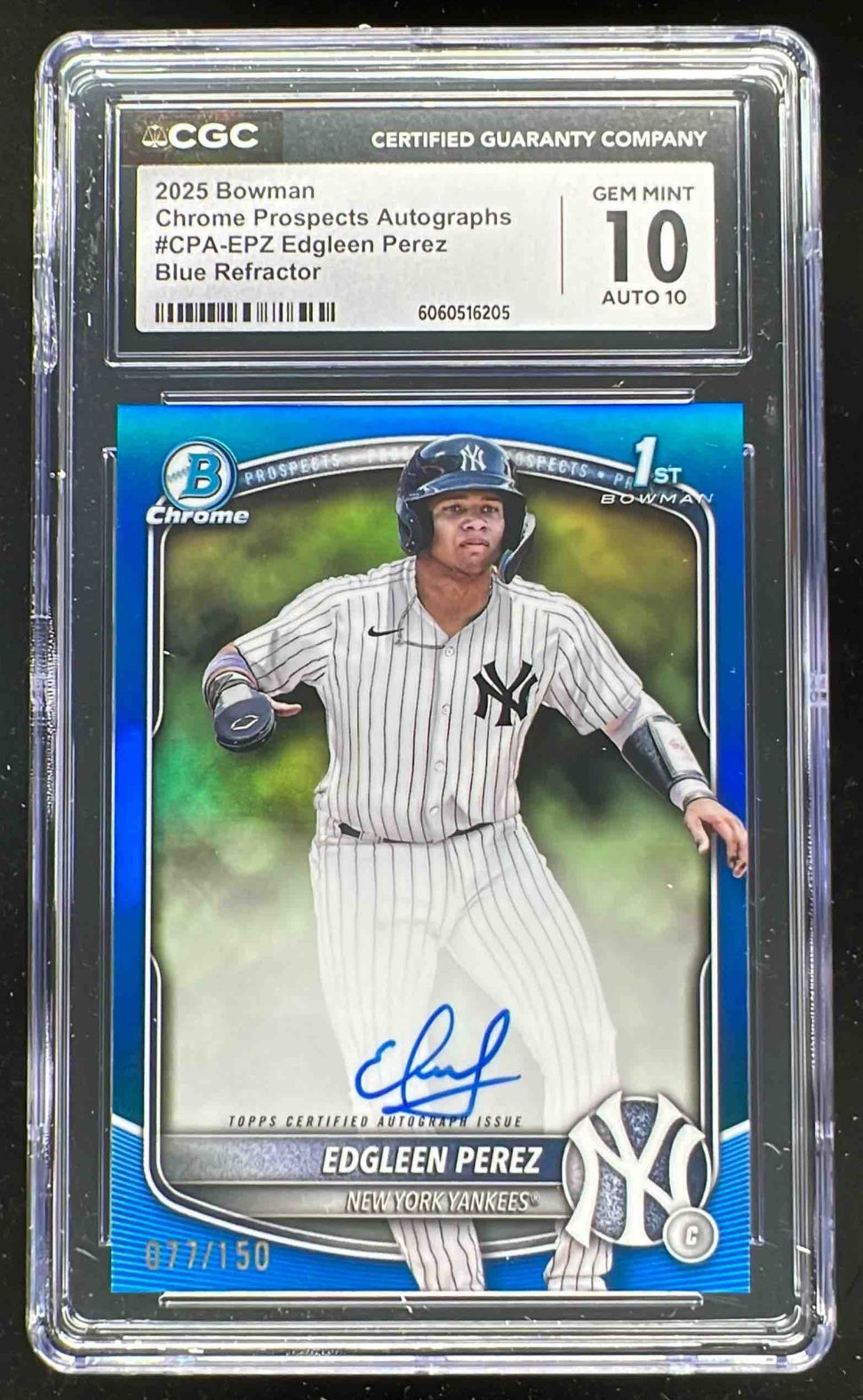 2025 Bowman Chrome Blue Refractor #CPA-EPZ Edgleen Perez RC Auto /150 CGC 10