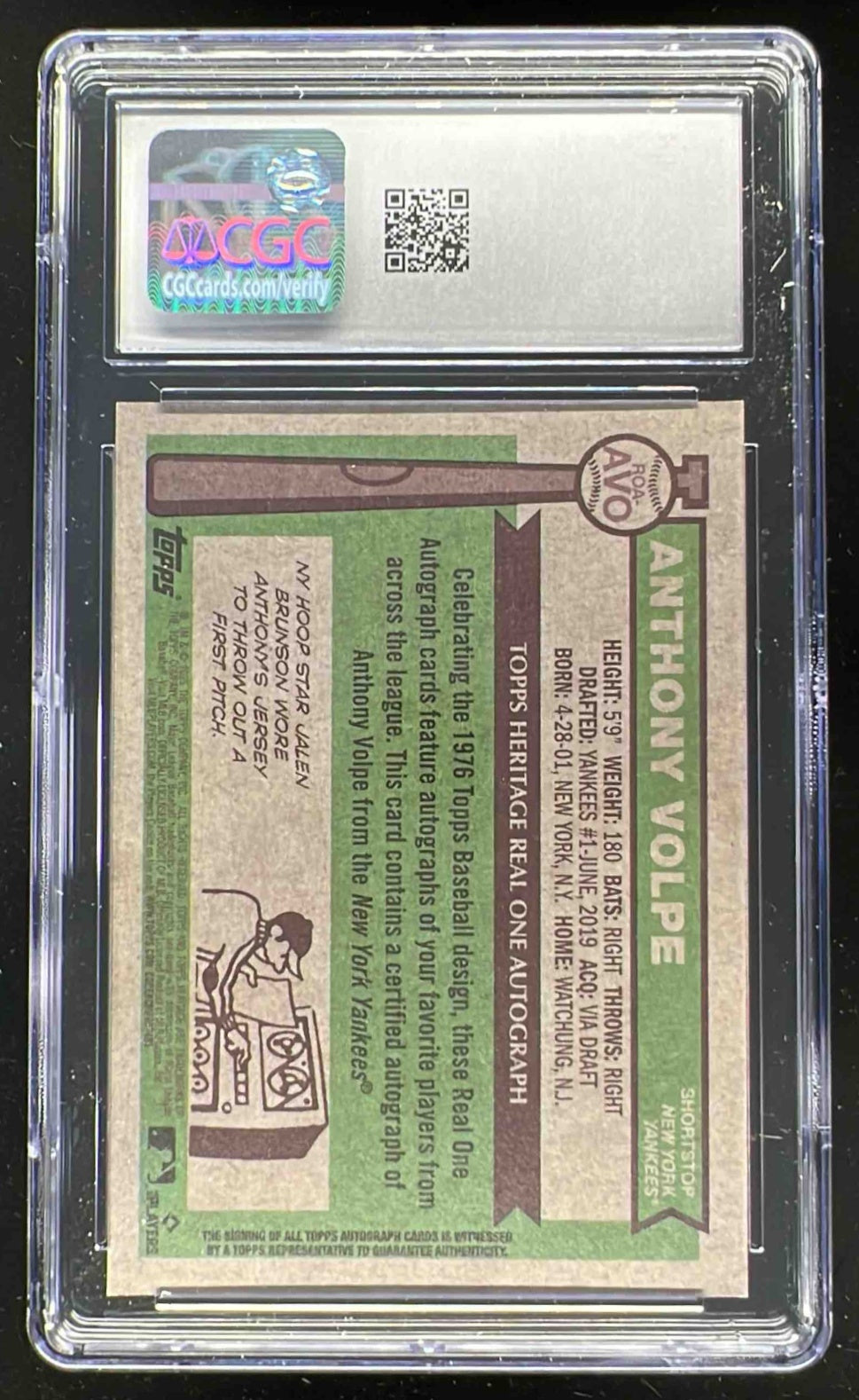 2025 Topps Heritage Real One Autographs #ROA-AVO Anthony Volpe Auto CGC 10