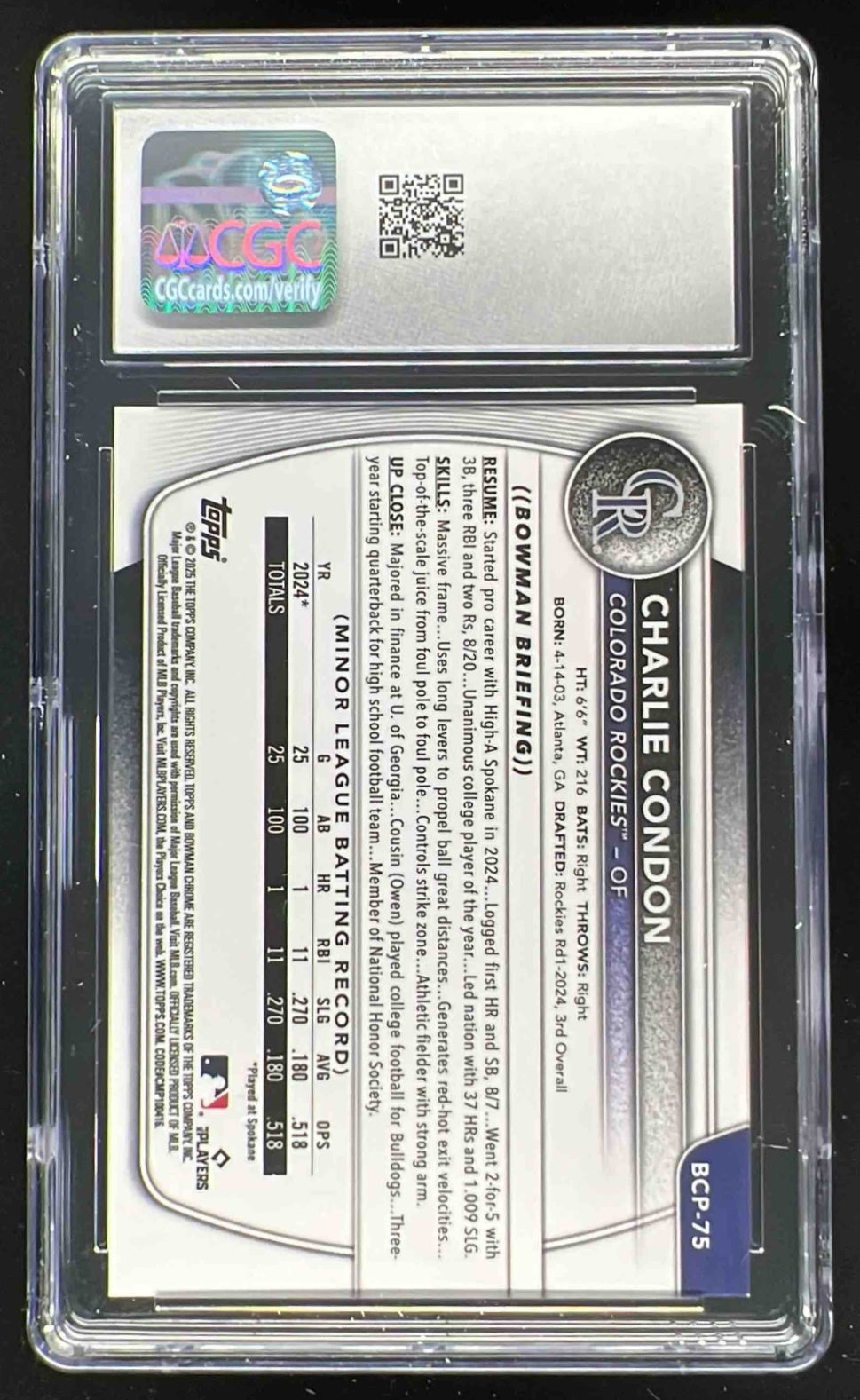 2025 Bowman Chrome Prospects Reptilian Gold #BCP-75 Charlie Condon RC /50 CGC 10
