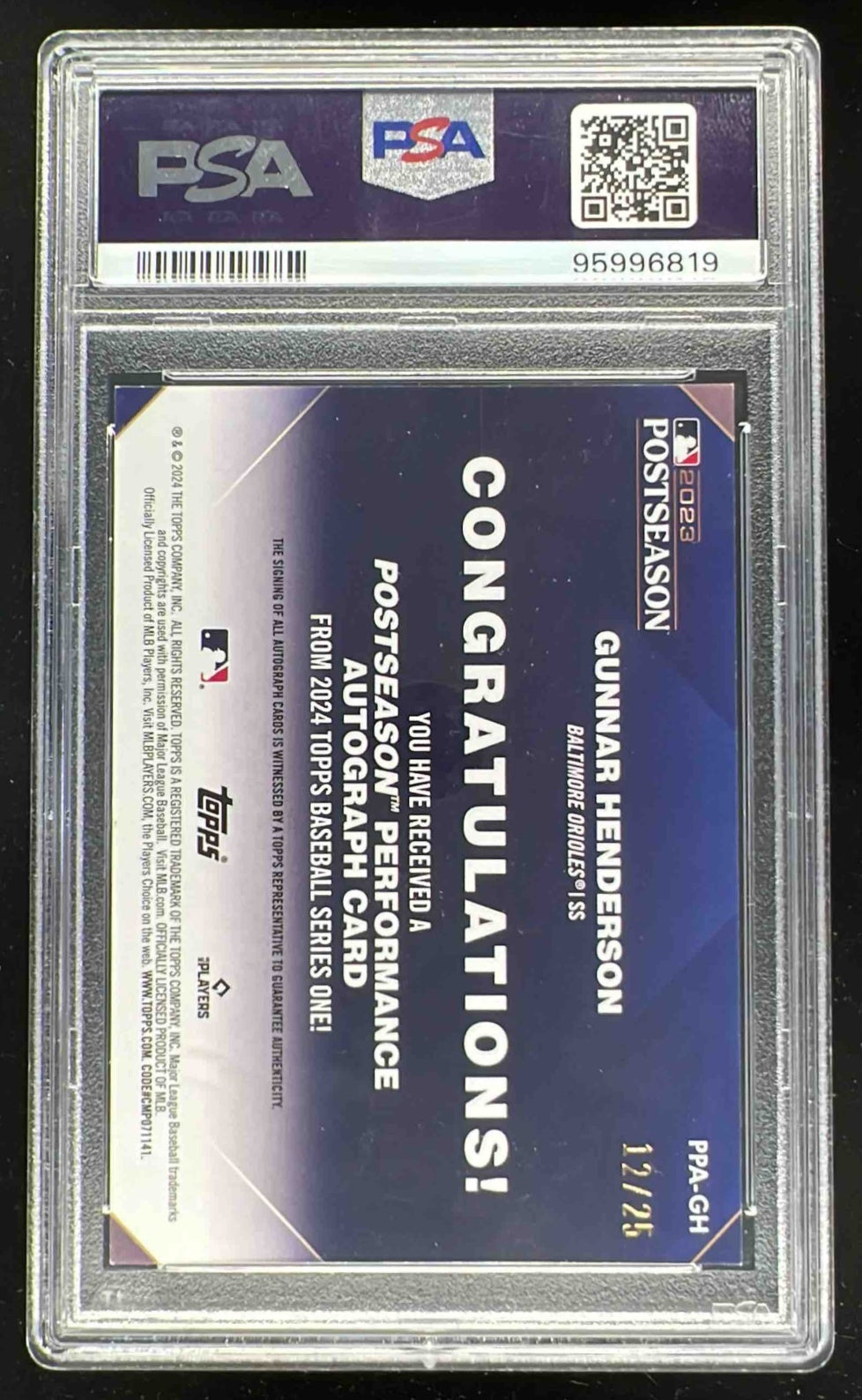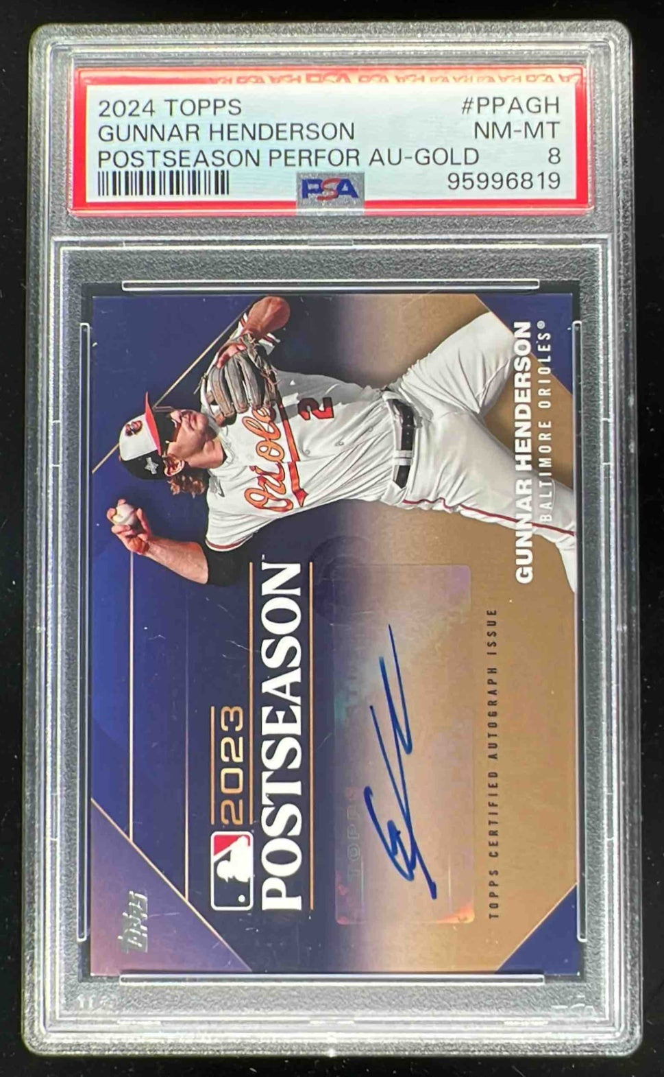 2024 Topps Postseason Performance Gold #PPA-GH Gunnar Henderson Auto /25 PSA 8