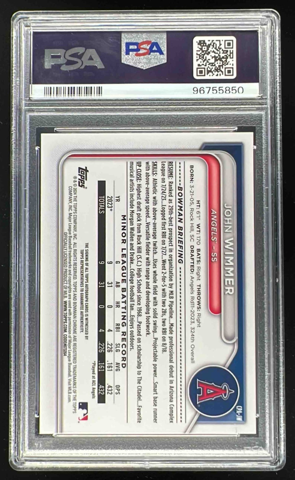 2024 Bowman Chrome Orange Shimmer Refractor #CPAJW John Wimmer RC Auto /25 PSA 9