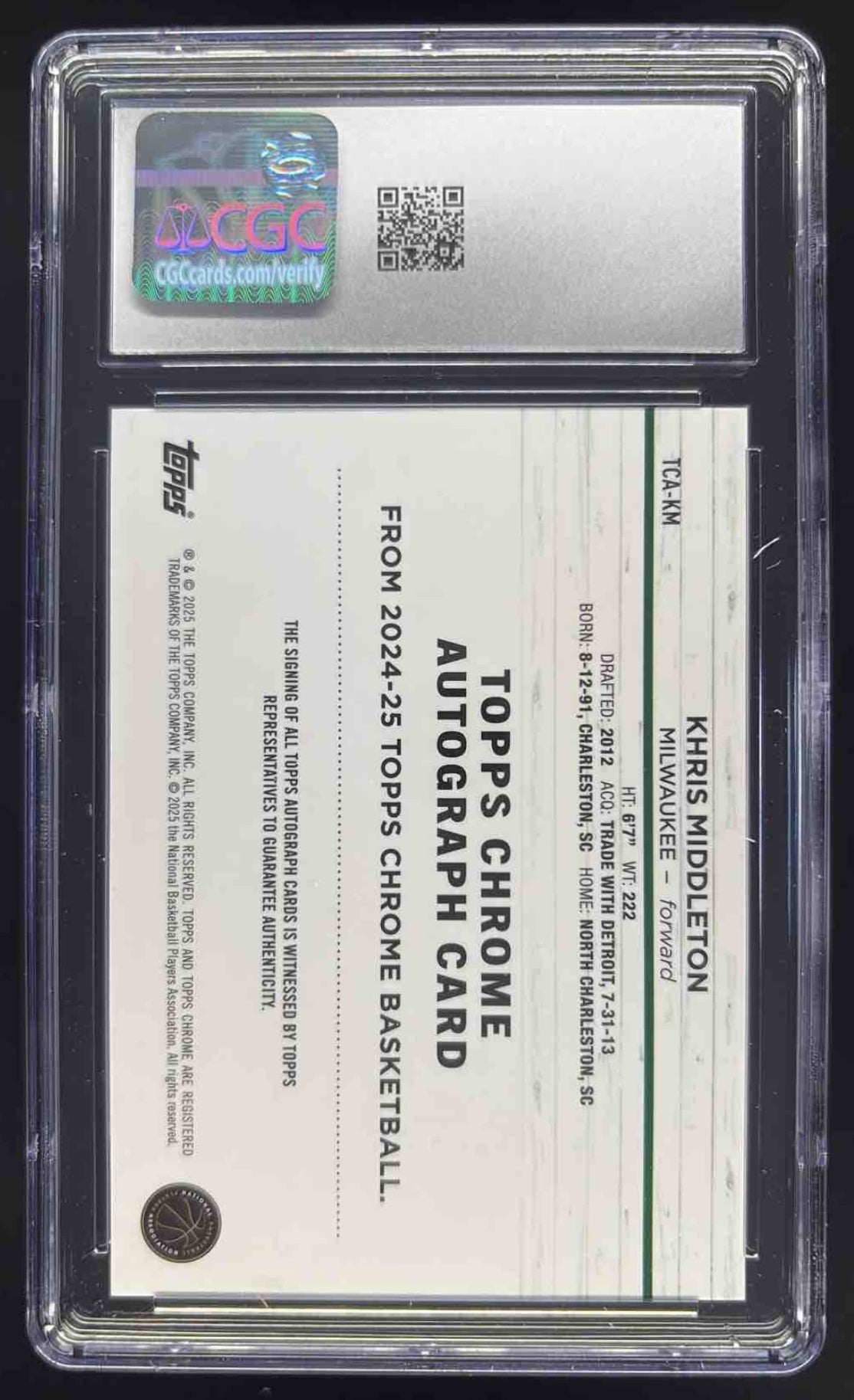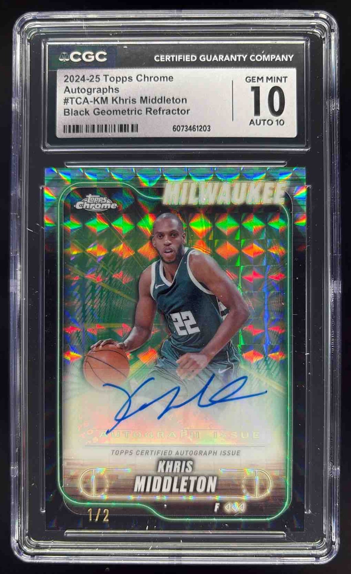 2024-25 Topps Chrome Black Geometric Refractor Khris Middleton Auto /2 CGC 10