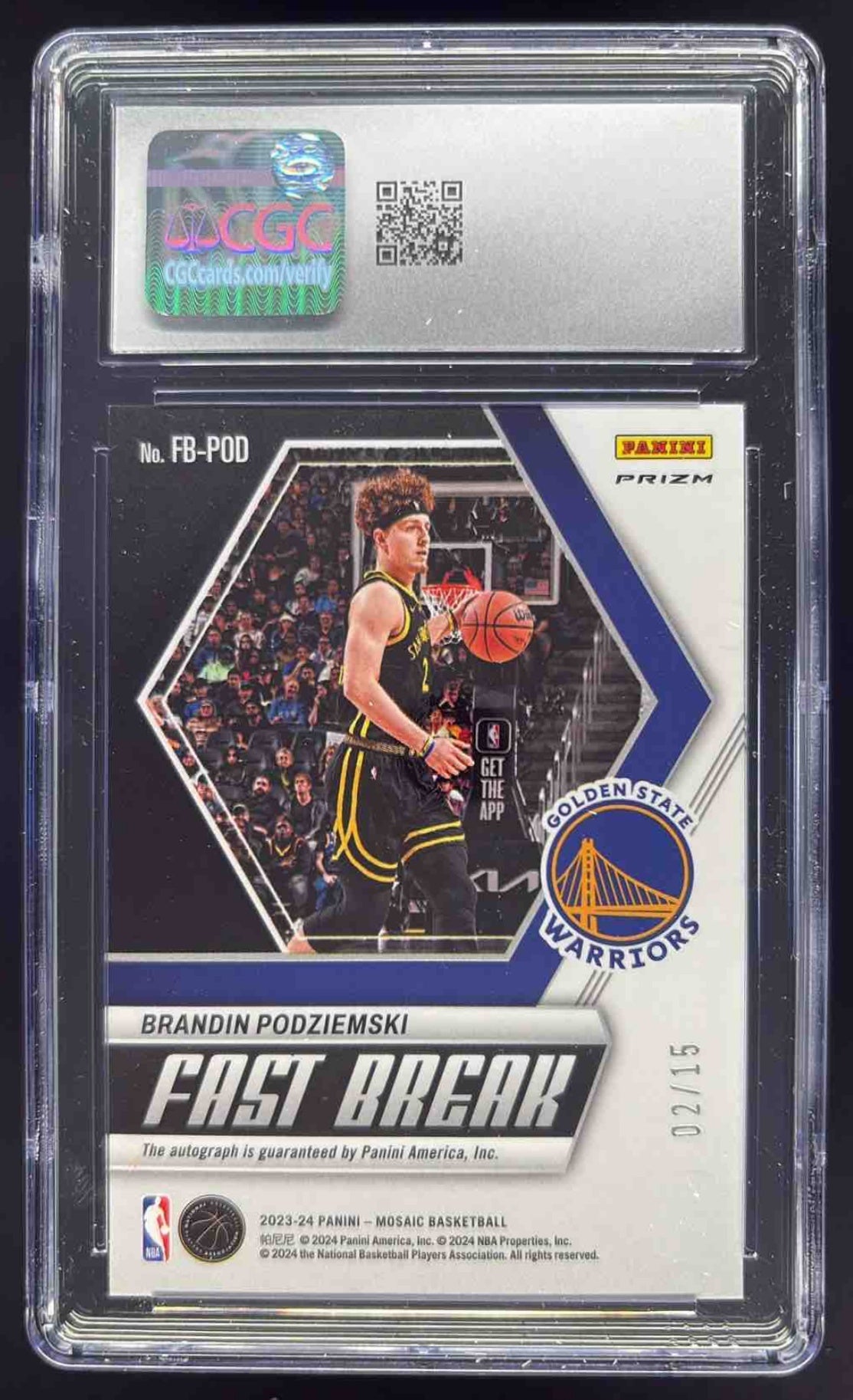 2023 Panini Mosaic Fast Break Pink #FB-POD Brandin Podziemski RC Auto /15 CGC 10