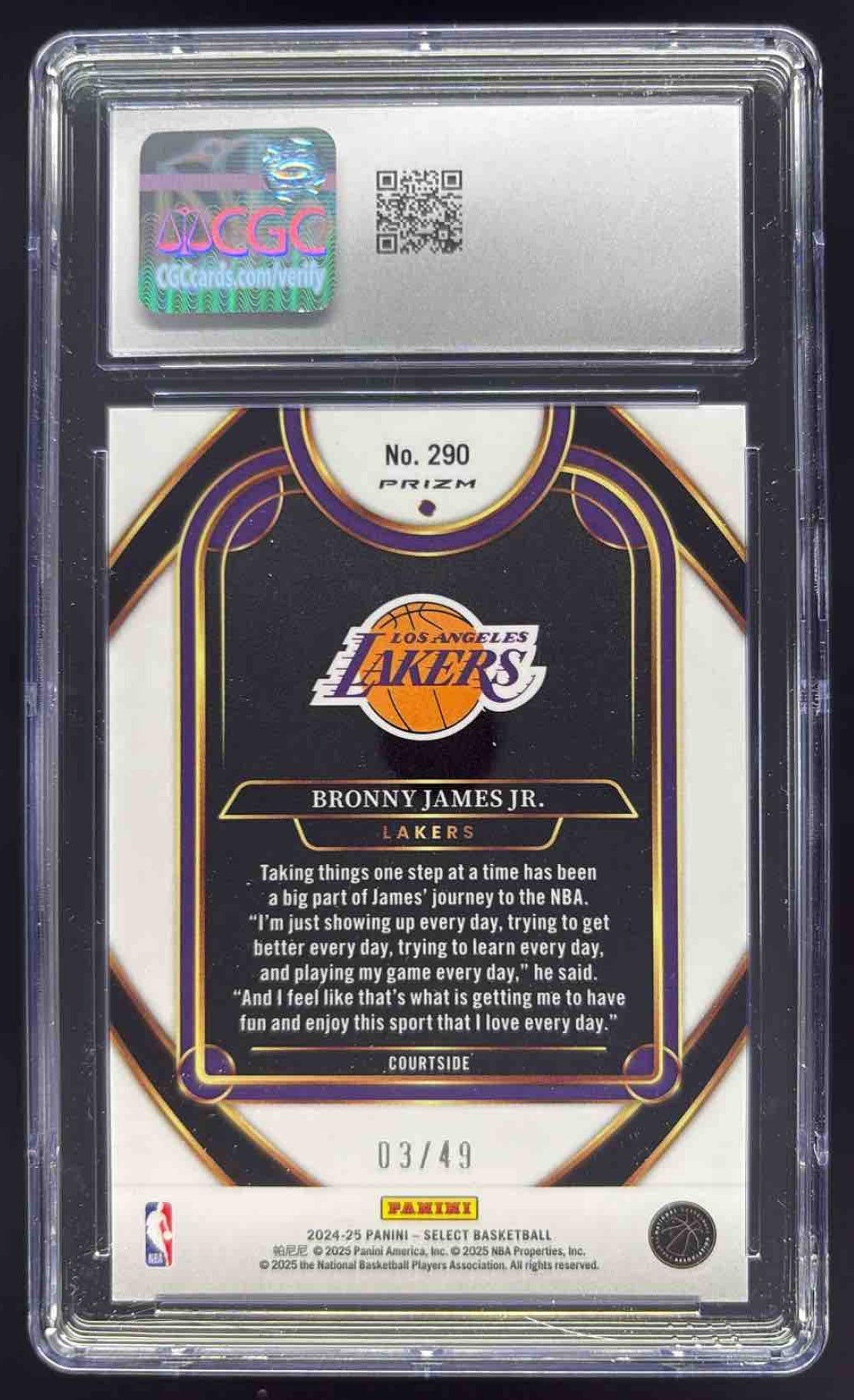 2024 Panini Select Courtside Red Disco Prizm #290 Bronny James Jr. RC /49 CGC 10